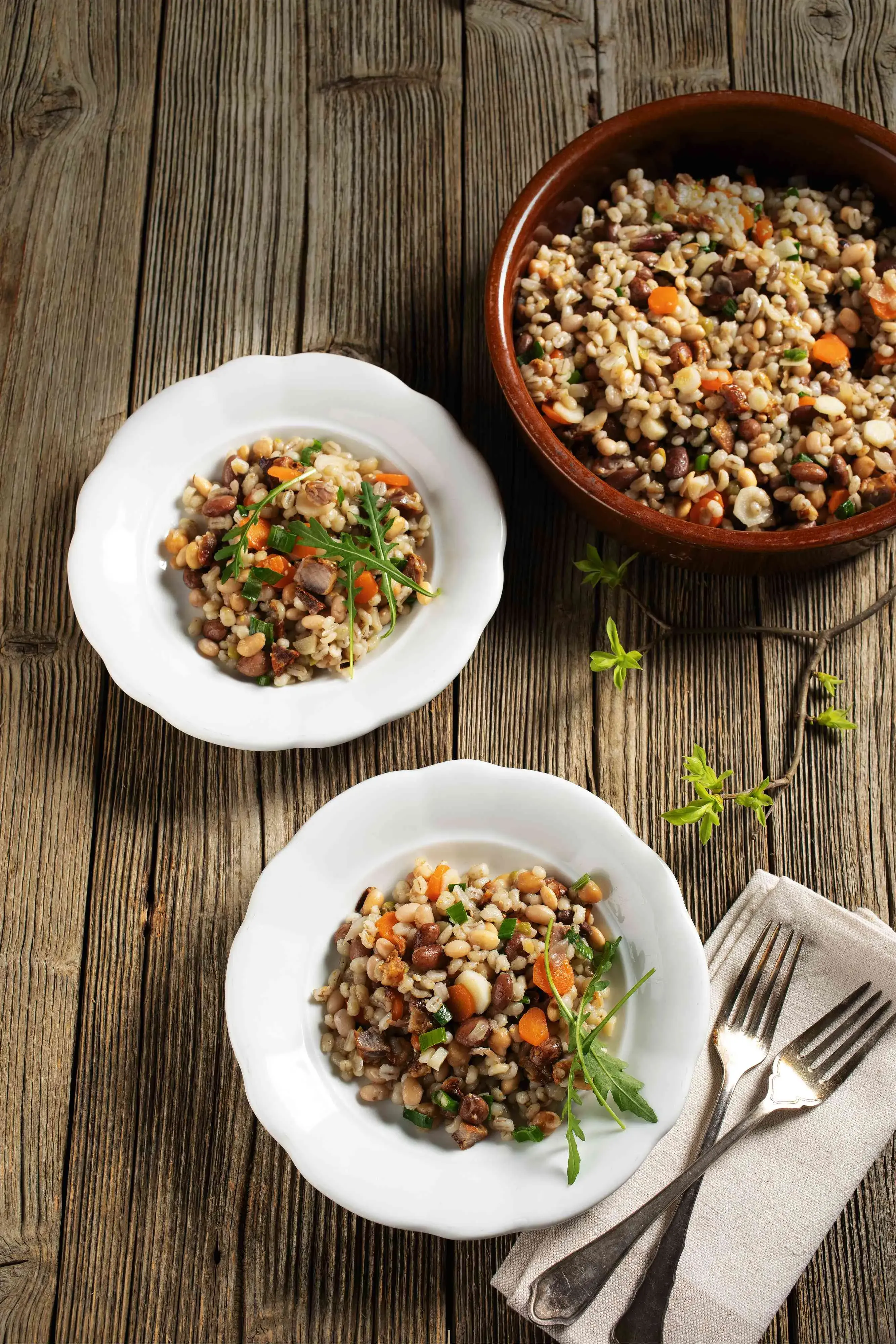 Šumajstr je specialita krajové kuchyně Slovácka a Záhoří. Je to do jisté míry varianta pokrmu ,kočičí tanec‘, který však místo fazolí používá čočku. My jsme ještě přidali čerstvou zeleninu. Kdo nebazíruje na tradici, může použít čerstvá rajčata a doplnit bazalkou.