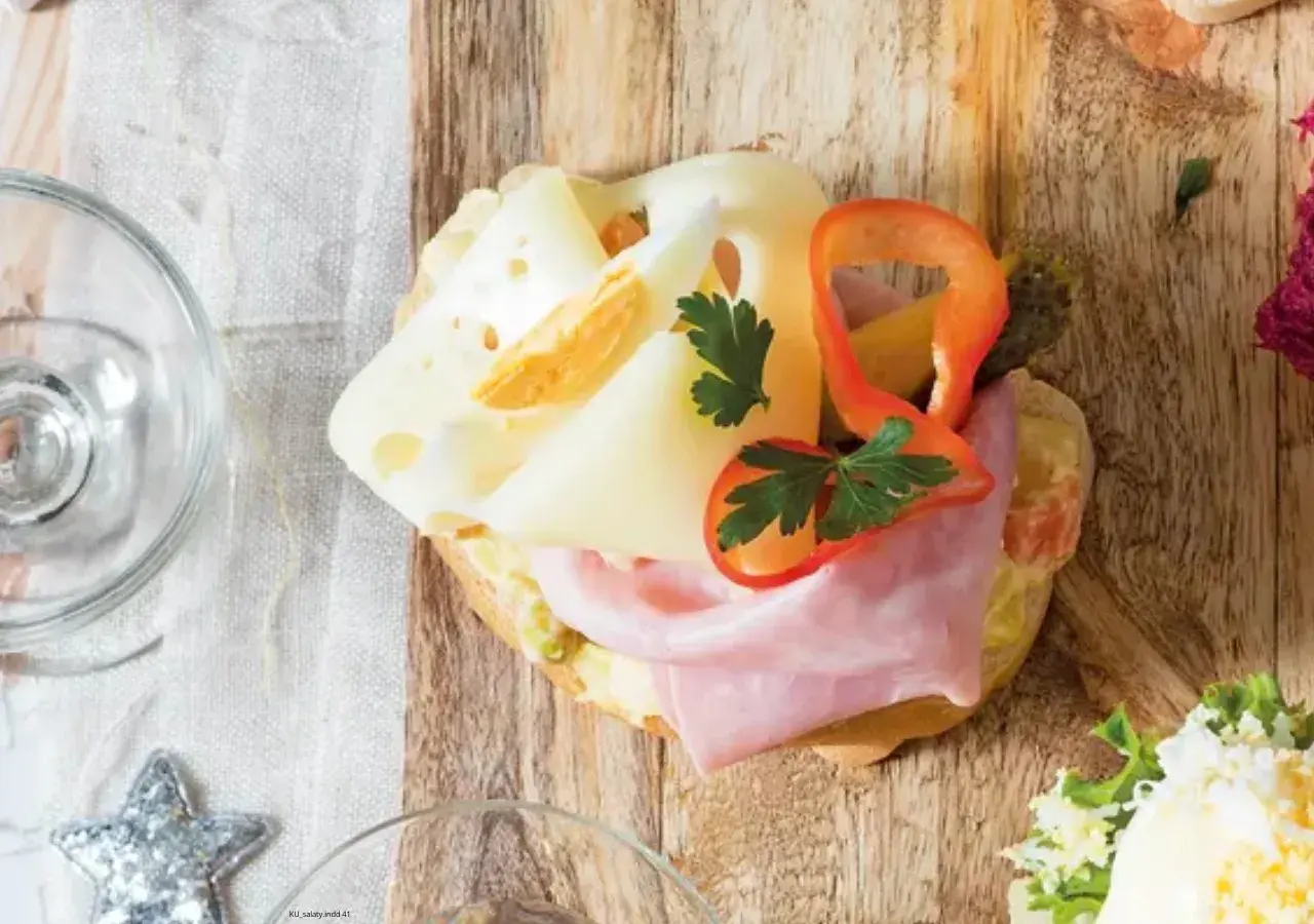 Oslava či sváteční dny bez chlebíčků? Nemožné! Vyhrajte si s domácí přípravou, jejich výhodou je, že si můžete vyrobit přesně takové, jaké vám budou vyhovovat. Třeba tyto tradiční chlebíčky s bramborovým salátem, šunkou a sýrem.
