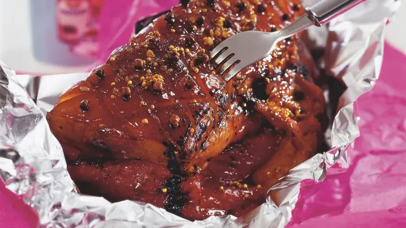 Šunka pečená nasladko je specialitou anglosaské kuchyně. Podstatné je, abyste ji sehnali i s kůží a vrstvičkou tuku – ta jí dodá při pečení zajímavou chuť. Takto se prodává takzvaná burgundská šunka, šunka ‚mandolína‘ a pražská šunka ‚od kosti‘, ale použít můžete i kousek uzeného se stejnými parametry, tj. s kůžičkou a tukem. Role coly: ozvláštnit chuť jemného masa.