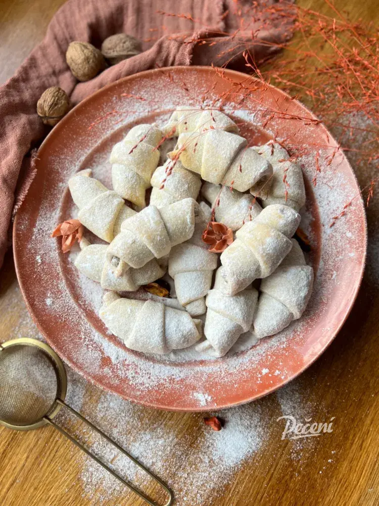 Svatomartinské rohlíčky s ořechovou náplní podle Míši Landové z blogu Víkendové pečení prý zvládne opravdu každý. Rohlíčky jsou z kynutého těsta, které se ale kynout nenechává. Takže příprava těsta je opravdu rychlá. Díky velkému podílu másla vydrží rohlíčky vláčné i několik dní, tedy pokud je ihned nesníte...