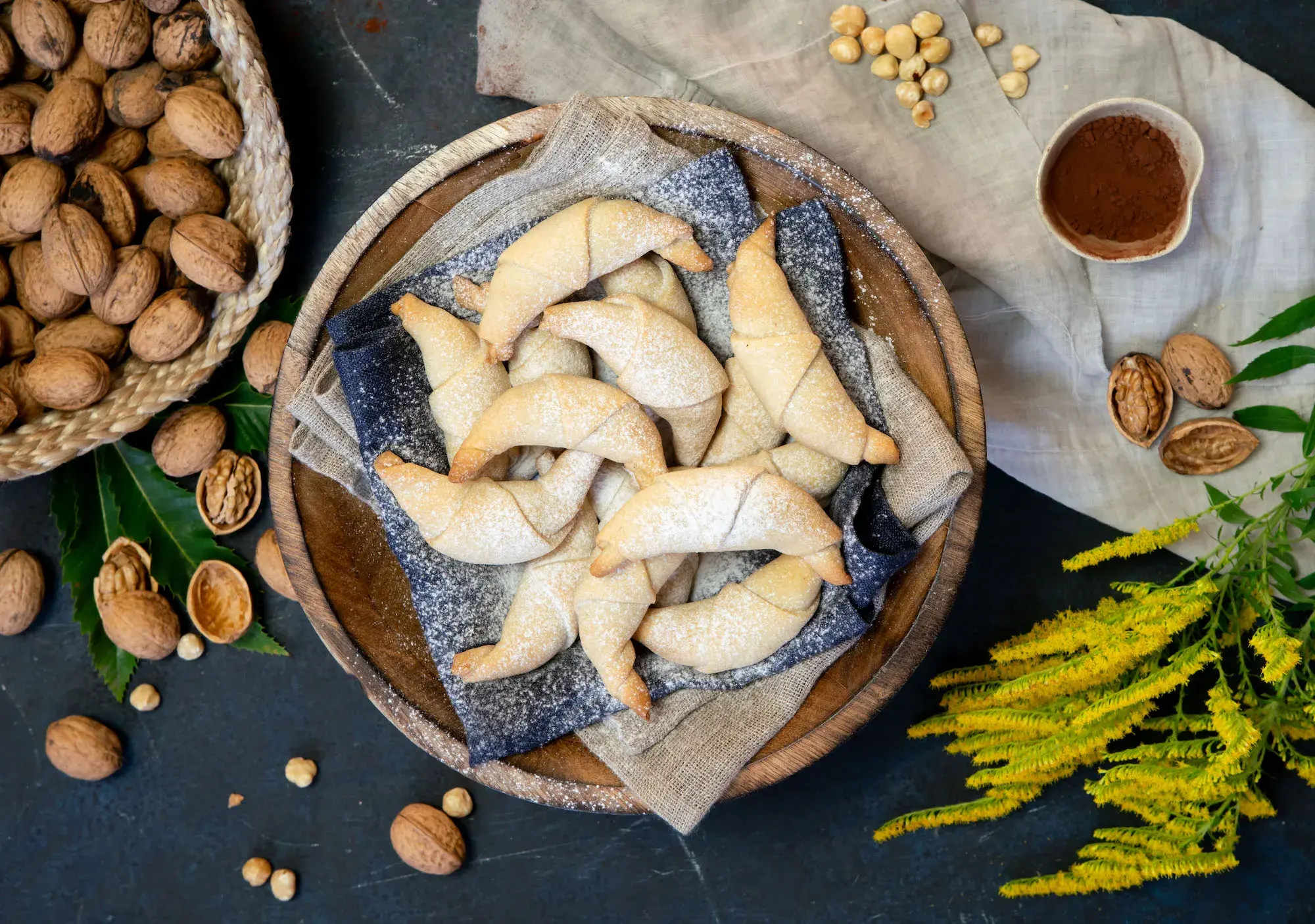 Svatomartinské rohlíčky s nugátovou náplní podle Markéty Pavleje příjemně voní máslem, jsou jemné, křehoučké a skvěle se hodí nejen k oslavám svátku sv. Martina, ale i k podzimnímu čaji či voňavé kávě podávané v neděli. Vyzkoušejte osvědčený recept známé foodblogerky.