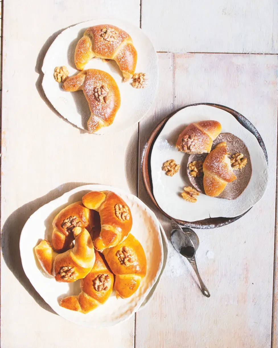 Na svatého Martina dostávali čeledíni a děvečky od hospodáře kynuté rohlíky, podkovy nebo též vandrovnice. My jsme těsto vylepšili zakysanou smetanou, díky níž jsou velmi vláčné. Jsou výborné s makovou i ořechovou náplní.