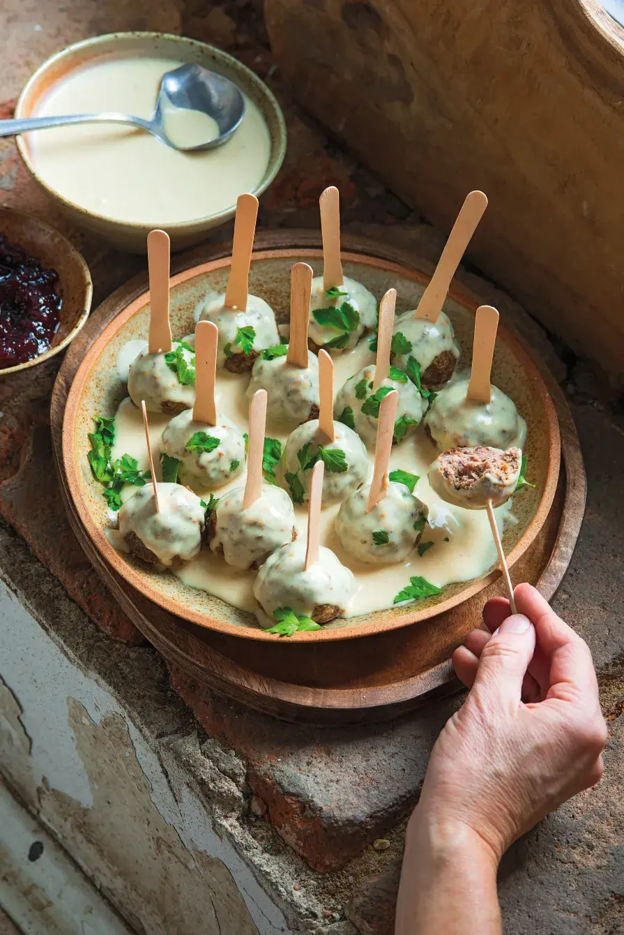 Neskutečně dobrá smetanová omáčka předurčuje tuhle verzi švédských masových kuliček k tomu, aby se zařadila ke stálicím vašich oslav i nedělních obědů – stačí je doplnit bramborovou kaší. K přípravě použijte půl na půl hovězí a vepřové maso, ať jsou kuličky dokonale šťavnate a tak akorát tučné.