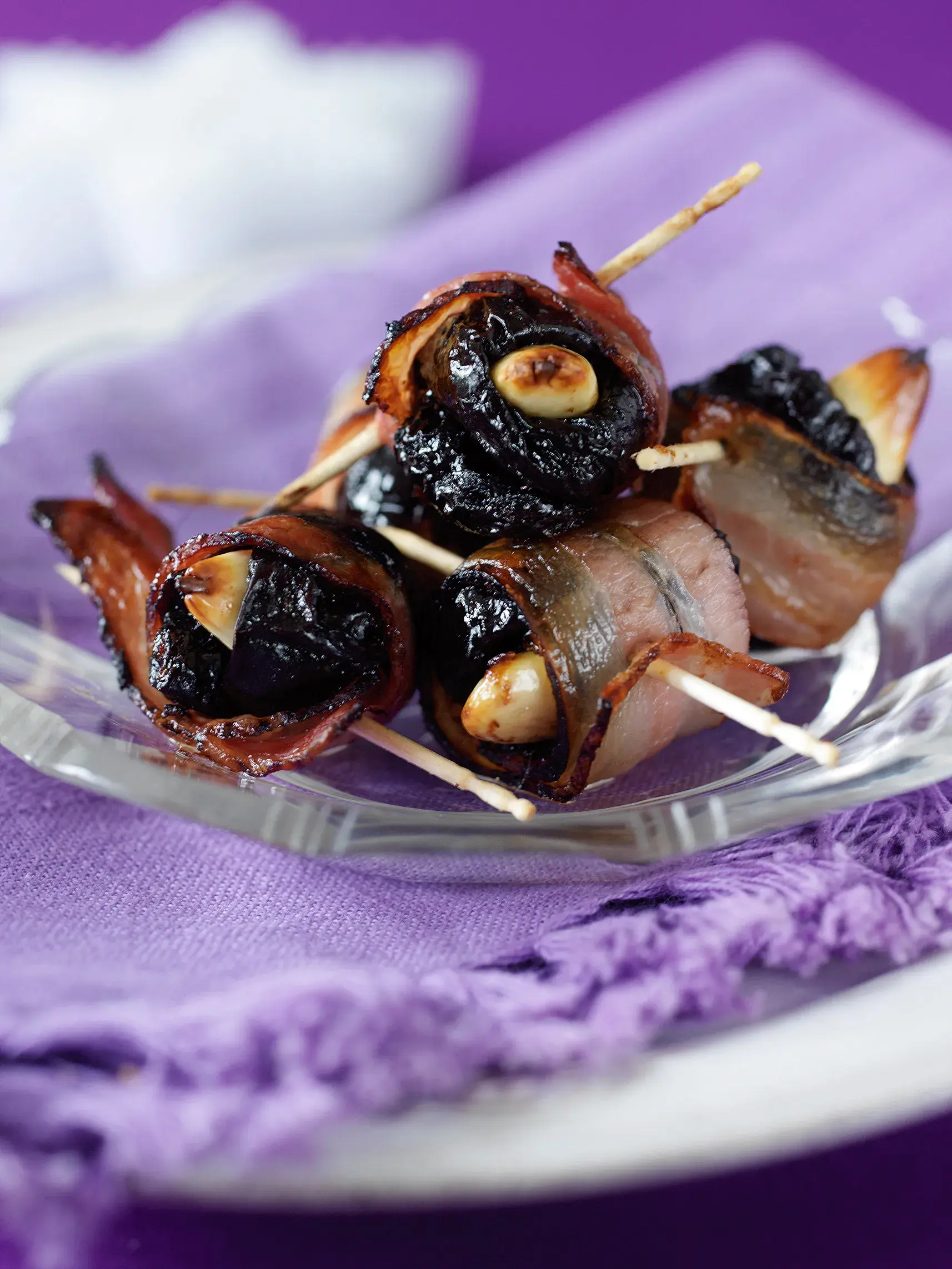 Švestky ve slanině plněné mandlí – nepříliš obvyklá kombinace ovoce a masa dává jednoduchému předkrmu dokonalý šmrnc. Ať se plněné švestky rozhodnete servírovat na Silvestra nebo jinou slavnostní příležitost, vrhněte se na jejich přípravu ideálně den předem. Aby se v portském víně stihly dostatečně rozležet.