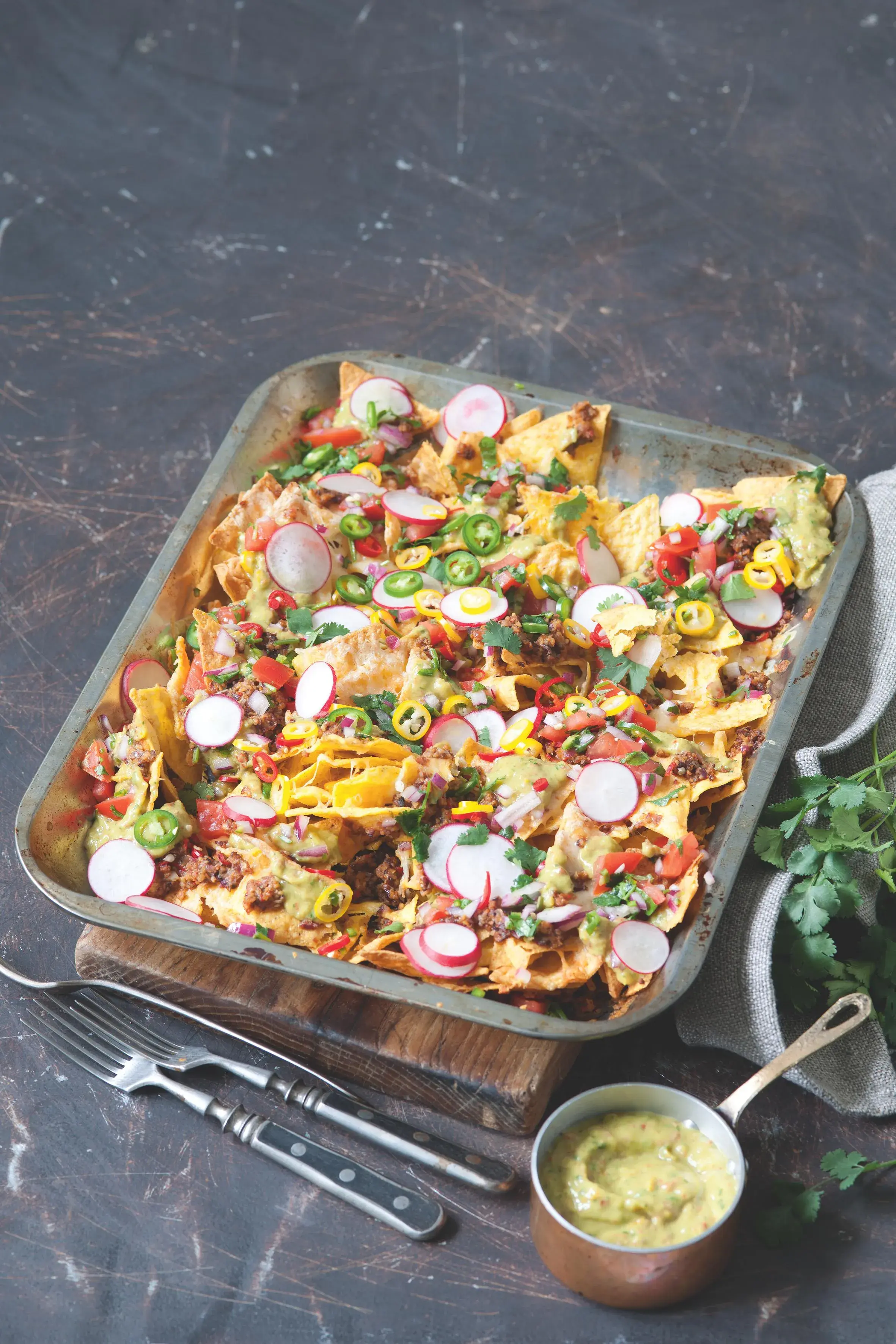 V Novém Mexiku se mísí mexická posedlost chilli se svěžestí španělské a středozemní kuchyně a láskou k fiestám. Zapečené nachos si můžete vychutnat i v domácích podmínkách. Je to dokonalé chroupání, které postavíte do prostřed stolu a každý si dle libosti a chuti nabere, co má rád.