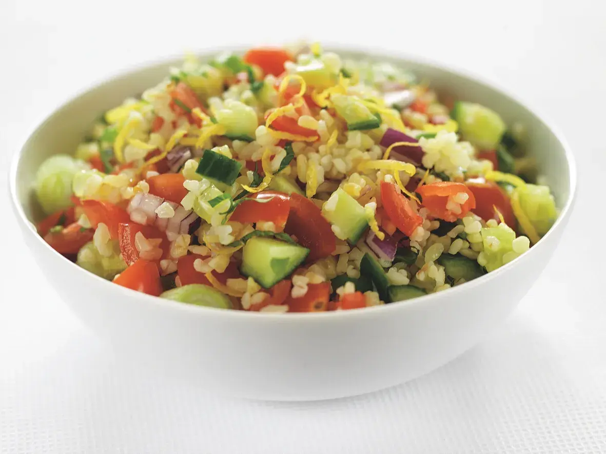 Tomuto salátu, inspirovanému Blízkým východem, dodává správný šmrnc křupavá okurka a citronová kůra. Přesvědčte se sami a recept na tabouleh z bulguru vyzkoušejte. Senzační bezmasý recept připravíte raz dva.