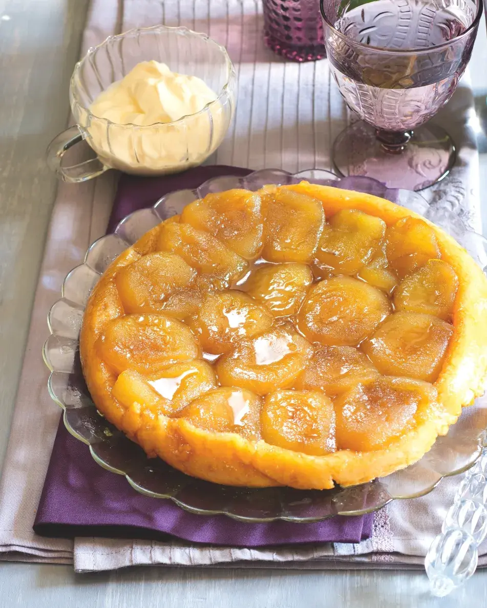 Obrácený jablečný koláč neboli Tarte Tatin vznikl ve Francii, a jak už to tak v gastronomii často bývá – díky chybě. Kdy jedna ze sester Tatinových, které vedly oblíbený francouzský hotel zapomněla při pečení koláče na těsto. Když to zjistila, jablka ve formě už byla rozpečená, přikryla je tedy těstem, koláč dopekla a obrátila. Karamelová chuť jablíček hosty okouzlila, a tak vznikl tento skvělý koláč, který si můžete připravit v mnoha obměnách.