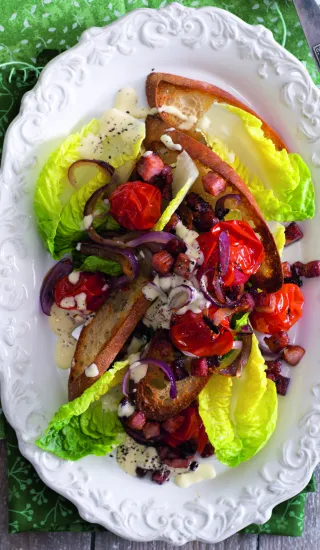 Salát nemusí být nutně jen studený. Opečené chorizo a lehce orestovaná rajčátka jsou v kombinaci se svěžím lupením a slanou fetou neuvěřitelný gurmánský zážitek.
