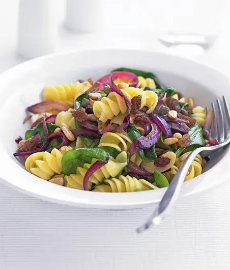 Rychlých těstovinových večeří je dobré mít v rukávu víc. Tentokrát s rozinkami, kapary a mladým špenátem.