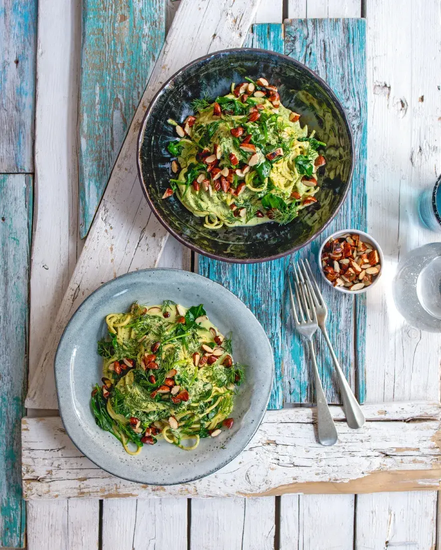 Pozor, těstoviny s bylinkovou tahini omáčkou jsou prudce návykové. Je to jen pár surovin, ale chutná to absolutně fantasticky. Při focení jsme se o těstoviny málem poprali. Možná jste doteď váhali, zda si sezamovou pastu tahini pořídit. Jak ovšem vidíte, neuplatníte ji pouze při přípravě hummusu, využití najde i při přípravě omáček a překvapivě ji můžete přidat i do těsta na čokoládovou bábovku.