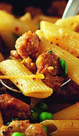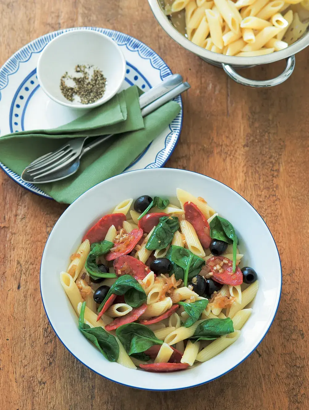 Klasický recept italských sedláků. Olivy, baby špenát a italské klobásky.