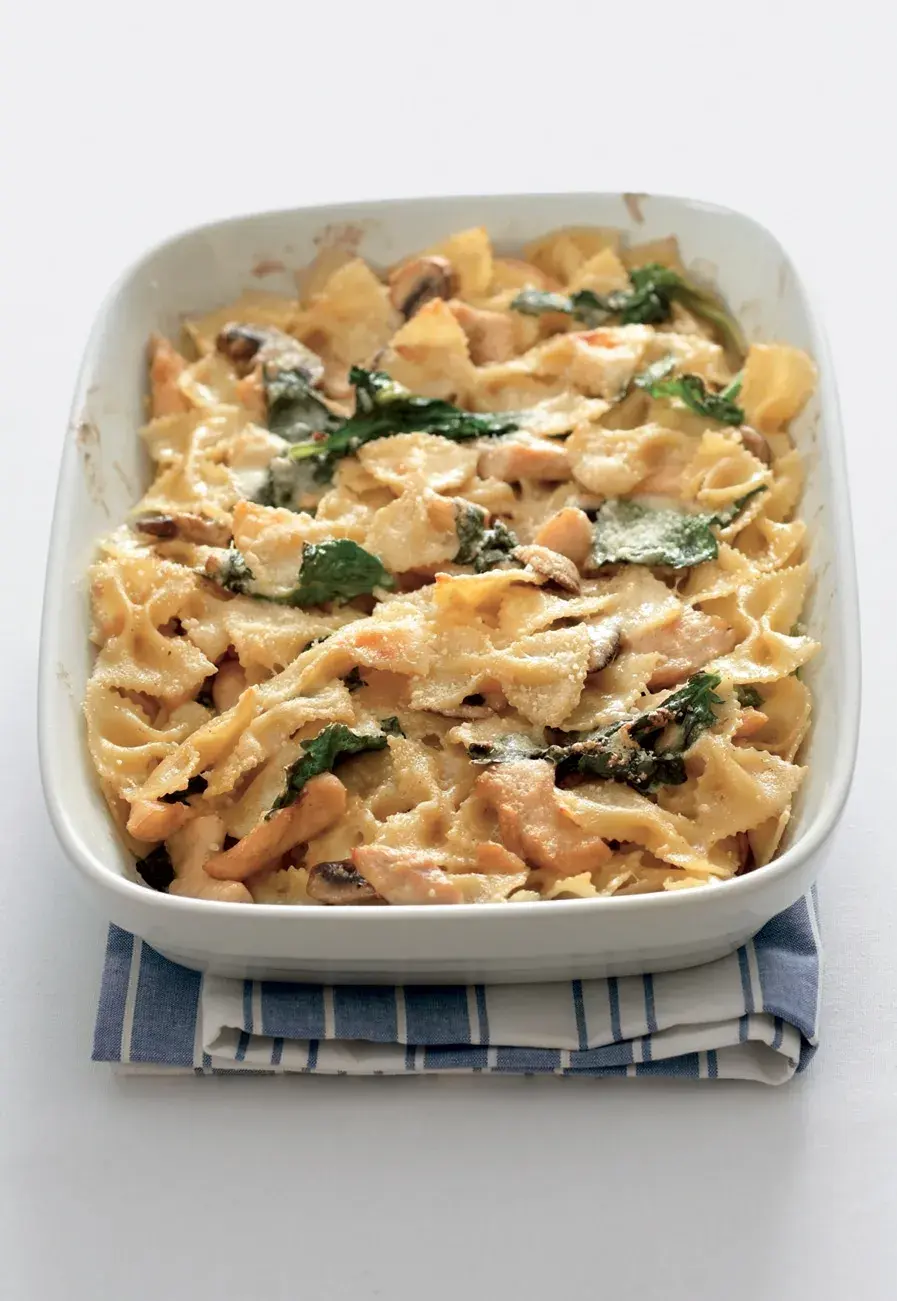 Další z variant zapečených těstovin, při které využijete základní krémové kuře. Tentokrát s těstovinami, žampiony a špenátem. Krémové kuřecí si připravte do zásoby a dejte zamrazit. Pak už jen stačí porci vyndat a připravit z ní třeba tyto těstoviny zapečené s kuřecím a špenátem, které si oblíbí i vaše děti! Především tu křupavou vrchní krustičku, ale i jemný a krémový obsah pod ní.
