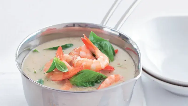 Omáčka z kokosového mléka je mimořádně jemná a lahodně pikantní.
