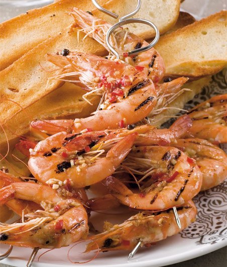 Šťavnaté krevety podávejte s opečenými bagetkami