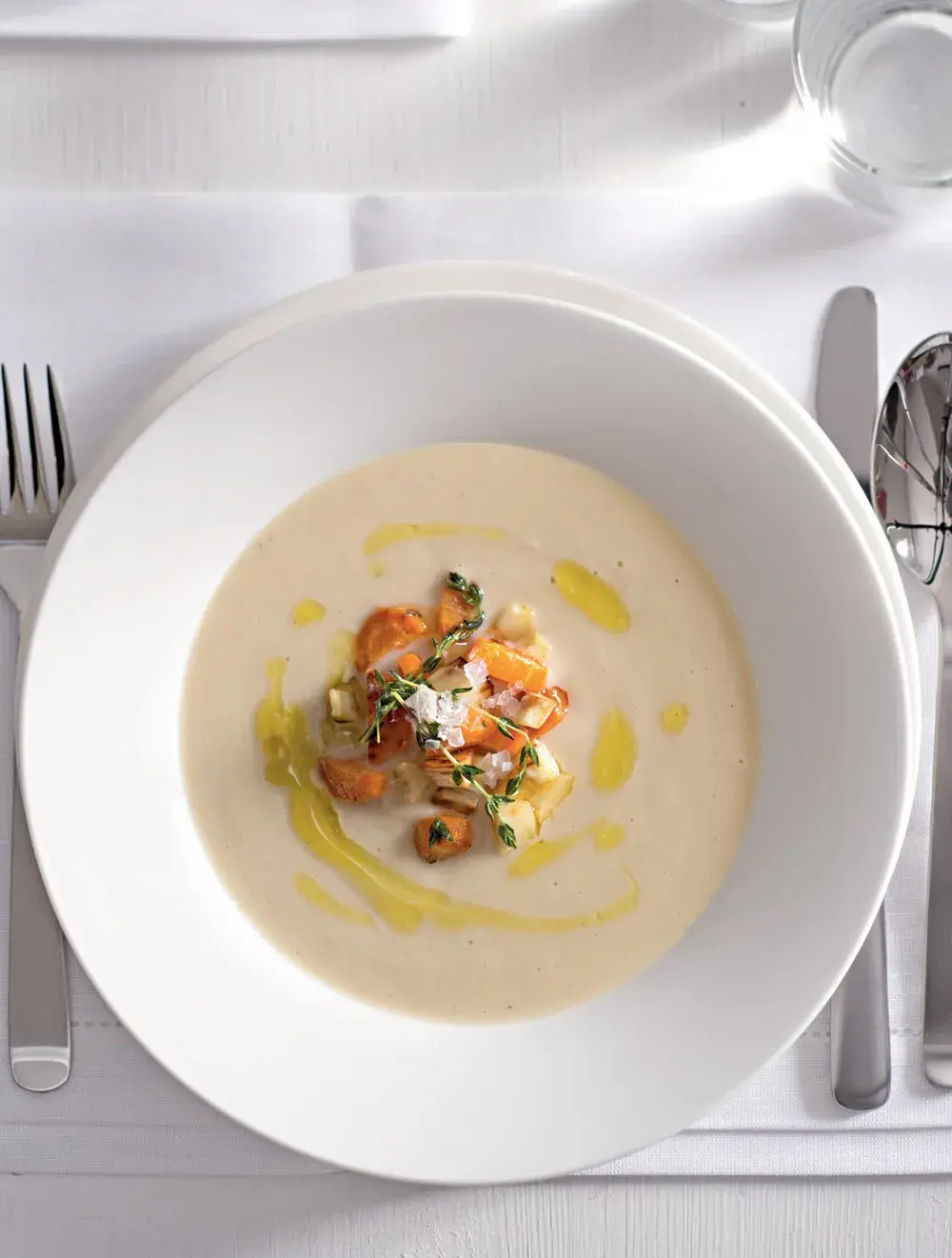 Uvařte si doma zeleninovou polévku jak z luxusní restaurace. Topinamburový krém od Romana Pauluse je přesně tím receptem, který z vás udělá šéfkuchaře na první dobrou. A pozor! I prezentace na talíři je důležitá: zelenina, čerstvý tymián a rozpuštěné máslo dodají polévce z topinamburů na exkluzivitě.