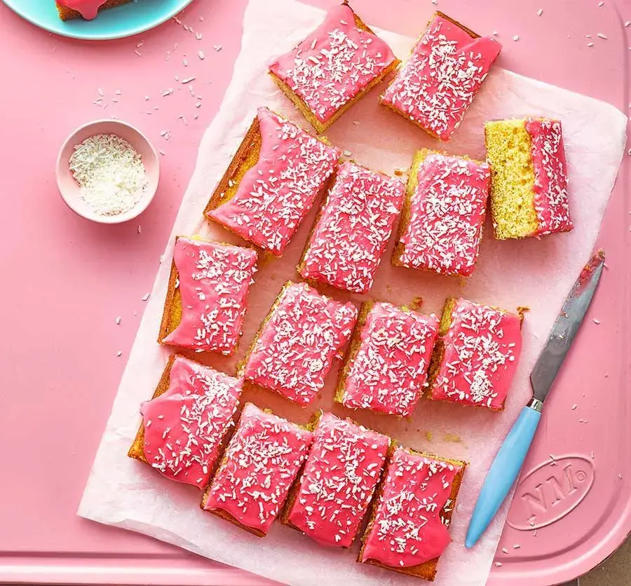 Tottenham řezy jsou tradiční britský moučník, který si získal popularitu díky své jemné piškotové chuti a ikonické růžové polevě. Původně vznikly v 19. století jako levná pochoutka pro dělníky, ale brzy se staly oblíbenou sladkostí i mezi fanoušky Tottenham Hotspur. Růžovou barvu polevě dodává malinový nebo ostružinový sirup, často doplněný kokosem. Jednoduché, ale naprosto neodolatelné!