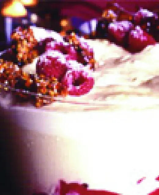 Mísa plná báječného krému, malin a zmrzliny! Tak vypadá luxusní verze skotského dezertu cranachan.