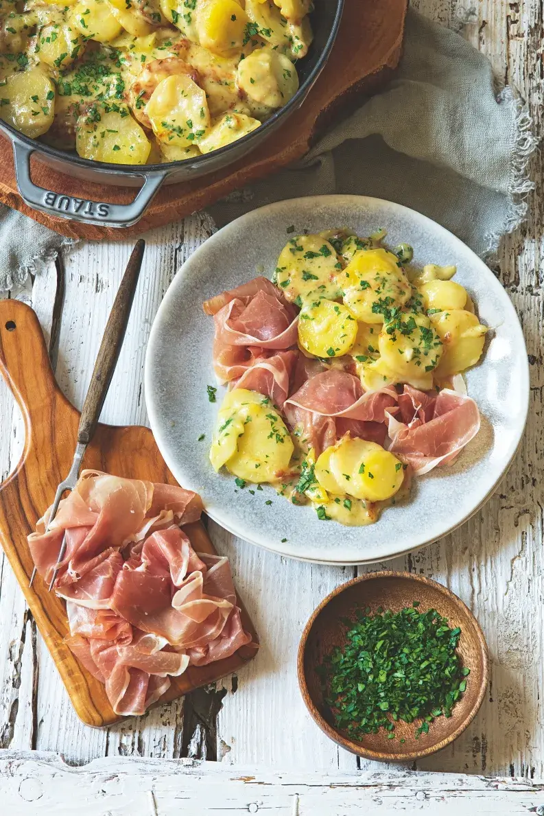 Truffade je prostý venkovský pokrm pocházející z Francie. Plátky brambor se pomalu opékají na sádle doměkka a poté promíchají se sýrem tomme. Pokud by se vám špatně sháněl, můžete ho nahradit gruyèrem, emmentálem nebo vyzrálým čedarem. Sýr brambory krásně spojí. Truffade můžete podávat třeba se sušenou šunkou a lehkým salátkem.