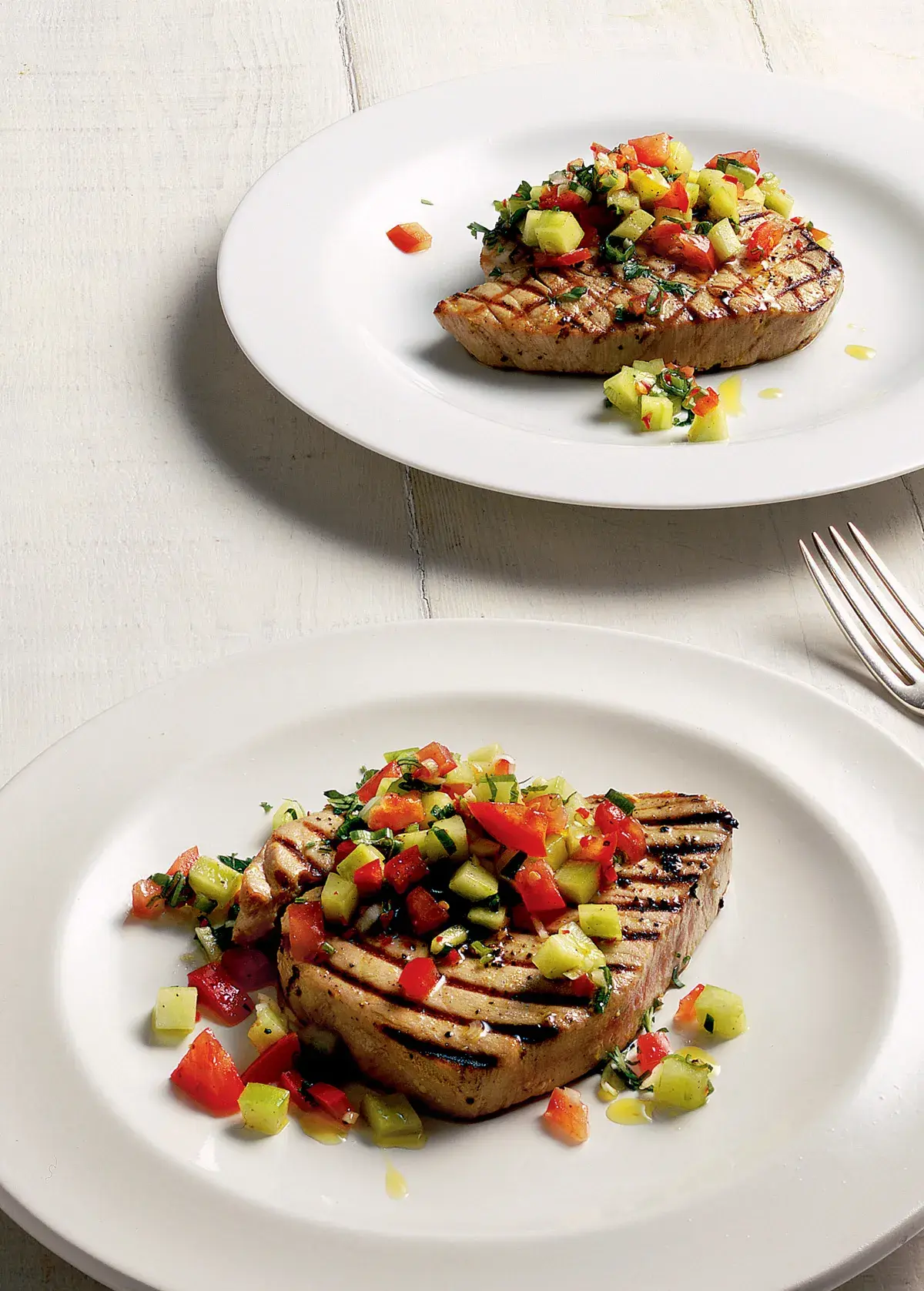 Tuňák je na grilování skvělý. Při dlouhém pečení se ale snadno vysuší, proto ho předtím na chvíli naložte do oleje.