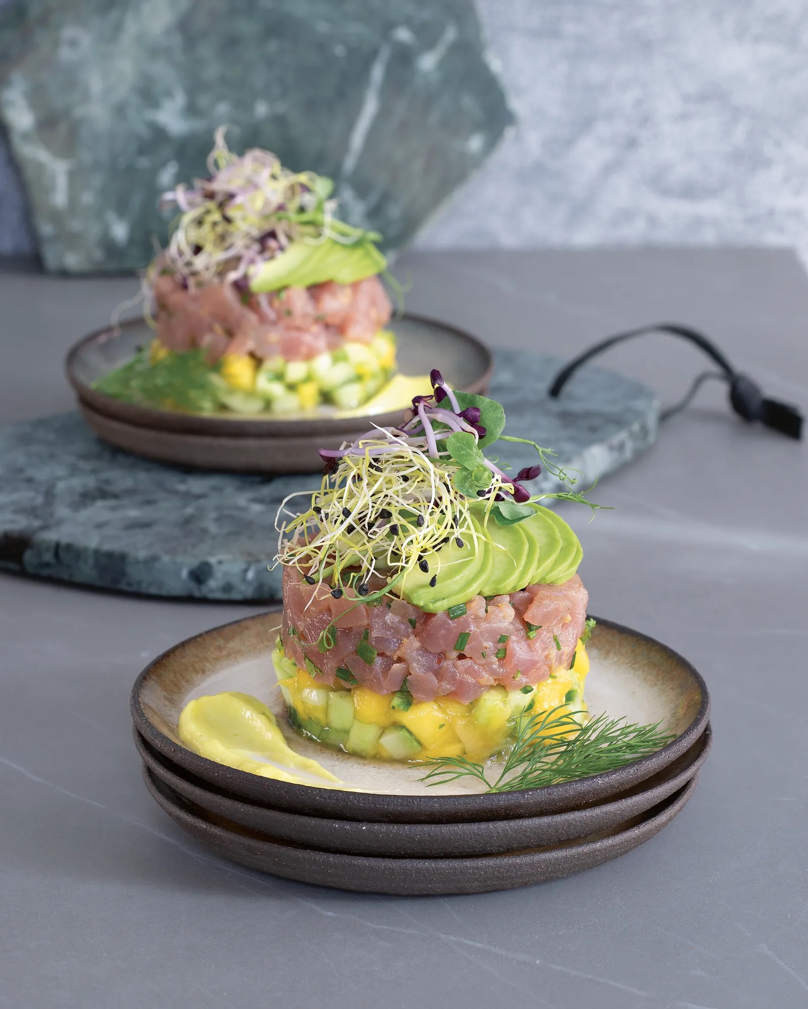 Elegantně naservírovaný tuňákový tatarák bude skvělý také jako předkrm pro slavnostní chvíle. Stačí zmenšit porce. Jednoduchý recept, efektní na oko a chuťově vyladěný k dokonalosti.