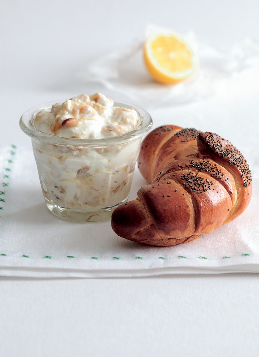 Jemná pomazánka tentokrát ve sladké verzi. Zkuste to s banány, mátou a javorovým sirupem.