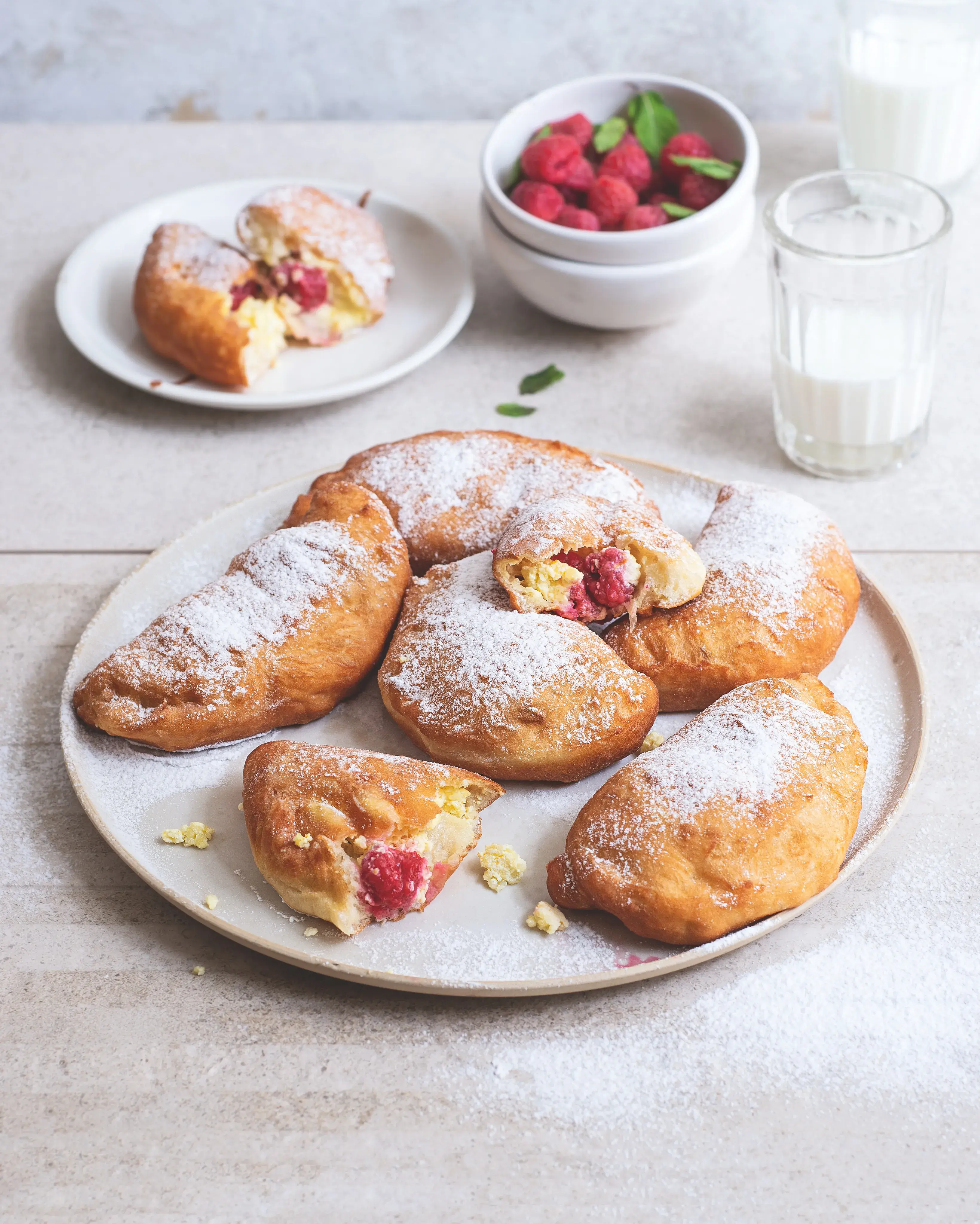 Smažené tvarohové kapsy z kynutého těsta se na první pohled mohou zdát složité, ovšem opak je pravdou. Kromě čekání na to, až těsto vykyne, vám půjde práce od ruky. Do náplně jsme použili maliny, ale stejně dobře budou chutnat třeba švestky. Tvarohové kapsičky servírujte jako dezert, nebo milovníkům sladkého jídla jako hlavní chod.