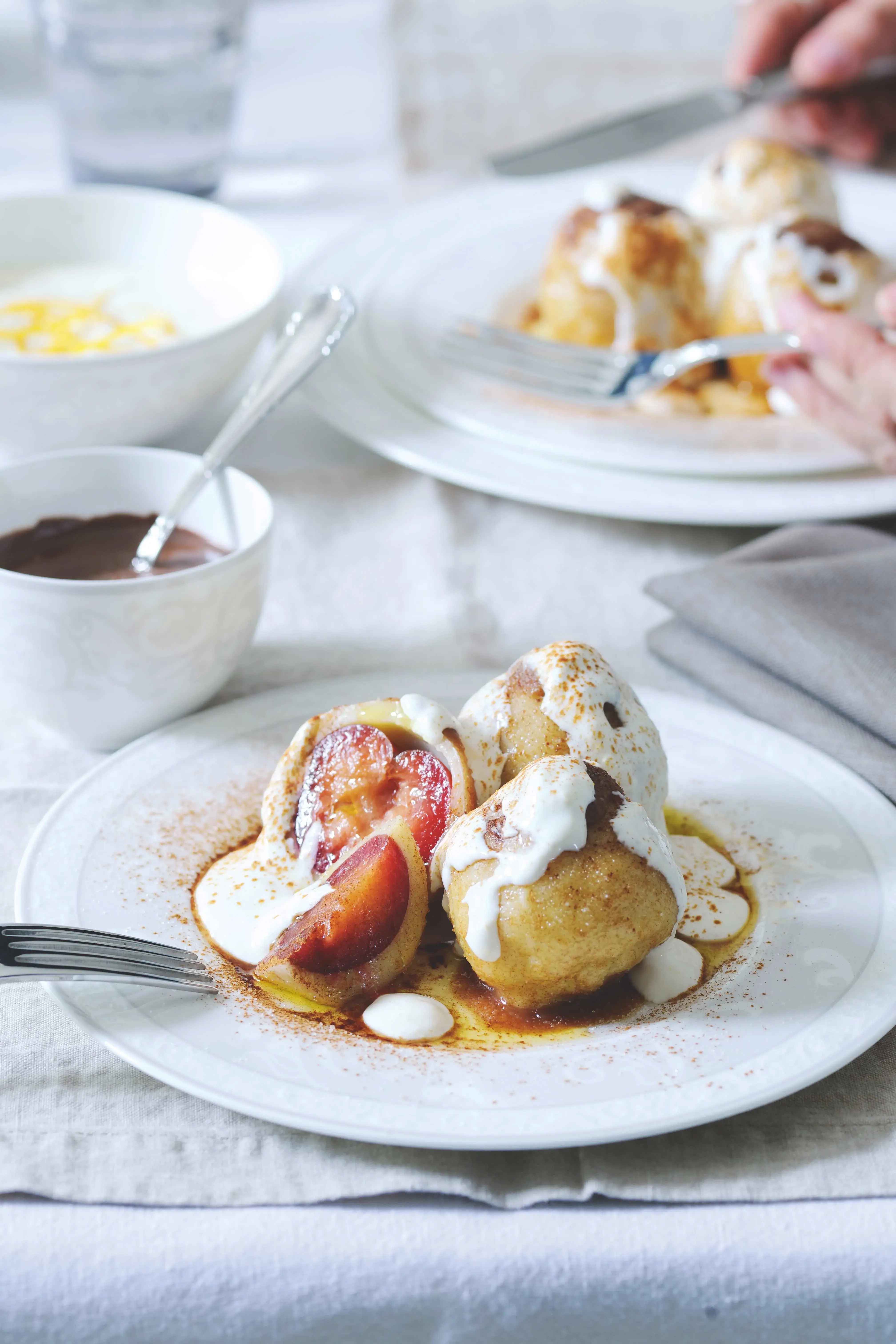 Sladká podzimní pohádka... Knedlíčky skrývající šťavnatou blumu před podáváním polijte rozpuštěným nugátem a citronovou zakysanou smetanou, a pak už se můžete vznášet na sladkém obláčku!