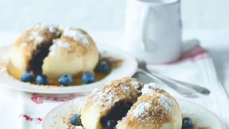 Knedlíky s ovocem nemusí mít jen tvar kulatých míčků. Výborné jsou i nakrájené na plátky s ovocným přelivem.