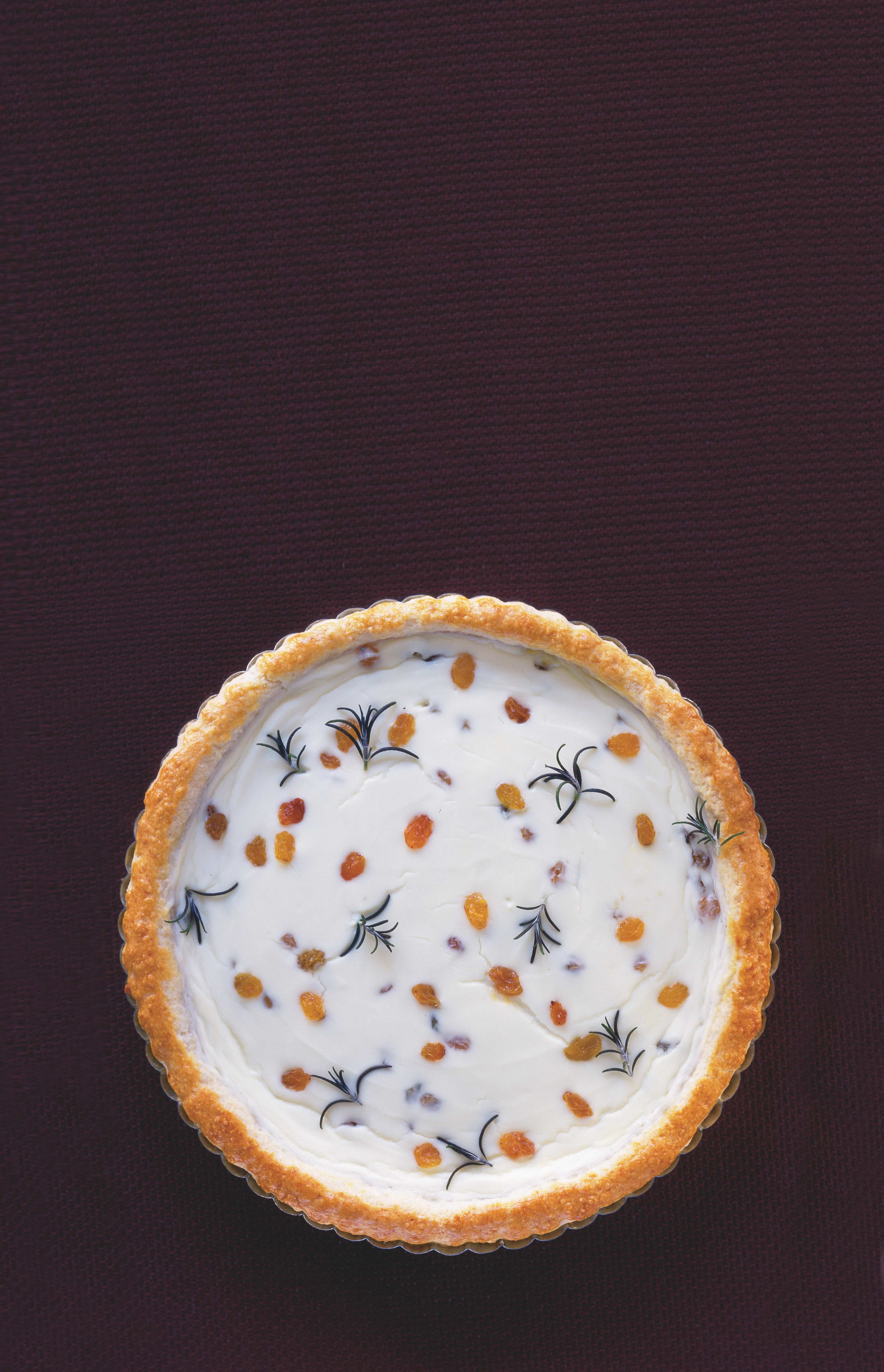 Totálně jednoduchý a perfektní. Tvarohový koláč s rozinkami a rozmarýnem svou vůně připomene staré časy, ale pozor - při současném zájmu o "středozemní" byliny je zároveň vysloveně moderní!