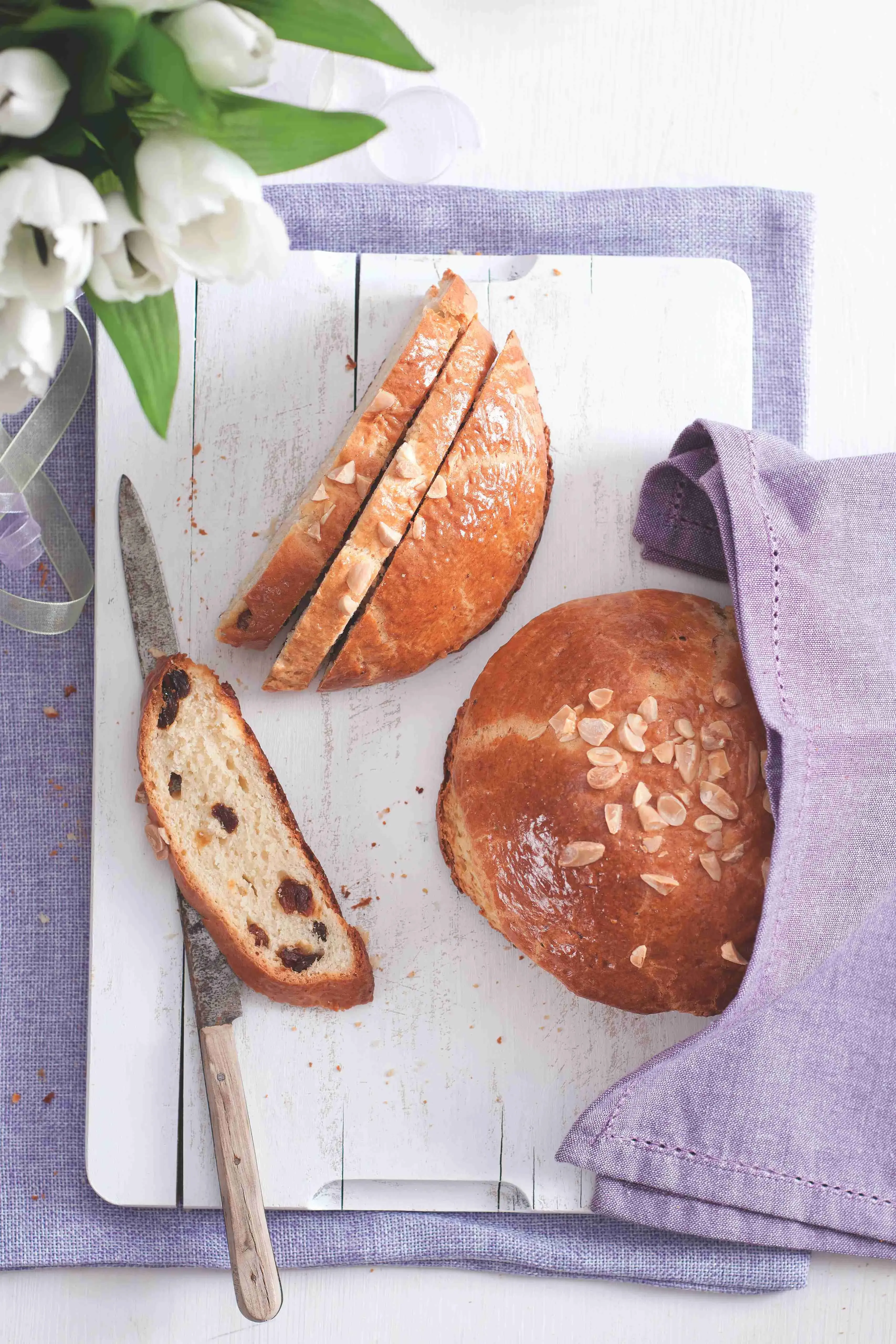 Nekynutý tvarohový mazanec je skvělou volbou, pokud si netroufáte na kynuté těsto nebo pokud ho před Velikonoci pečete na poslední chvíli. Díky tvarohu je velikonoční mazanec krásně vláčný a přitom nadýchaný. Po rozkrojení vás okouzlí mozaika z rozinek a sekaných mandlí.