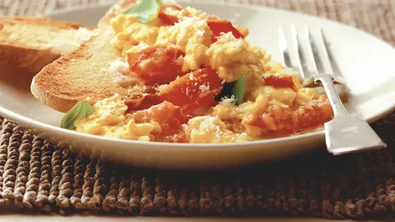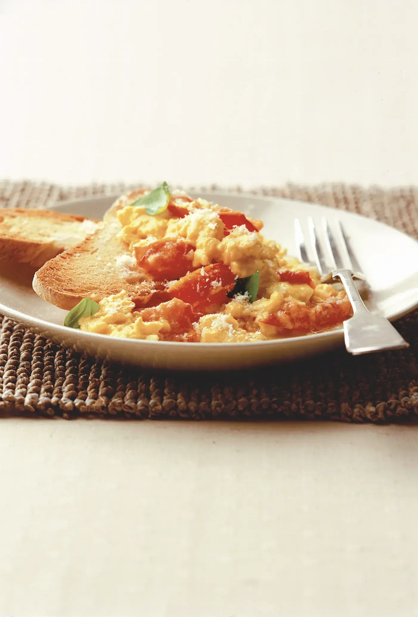 Vyzbrojte se pánví s nepřilnavým povrchem, dřevěnou špachtlí, protože vejce by se měla navzdory svému názvu spíš obracet než míchat, a vzhůru do nového dne!