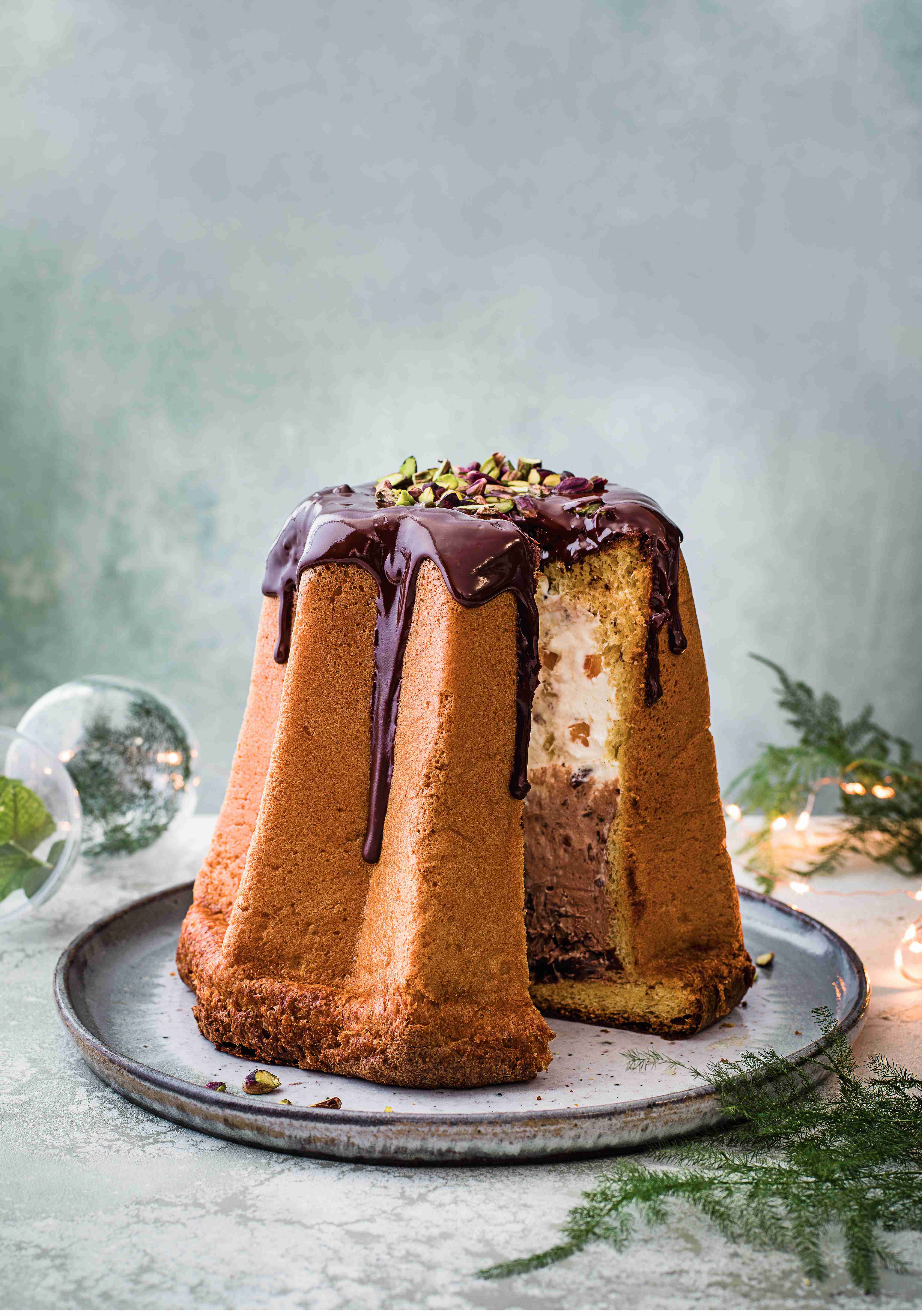 Sváteční dezert v italském stylu! Inspirovaný je zuccottem, toskánským dezertem z piškotu naplněného ricottou. V téhle variantě můžete sáhnout po jednom z vánočních kousků – milánském panettone nebo veronském pandoru, které se peče ve formě ve tvaru hvězdy.