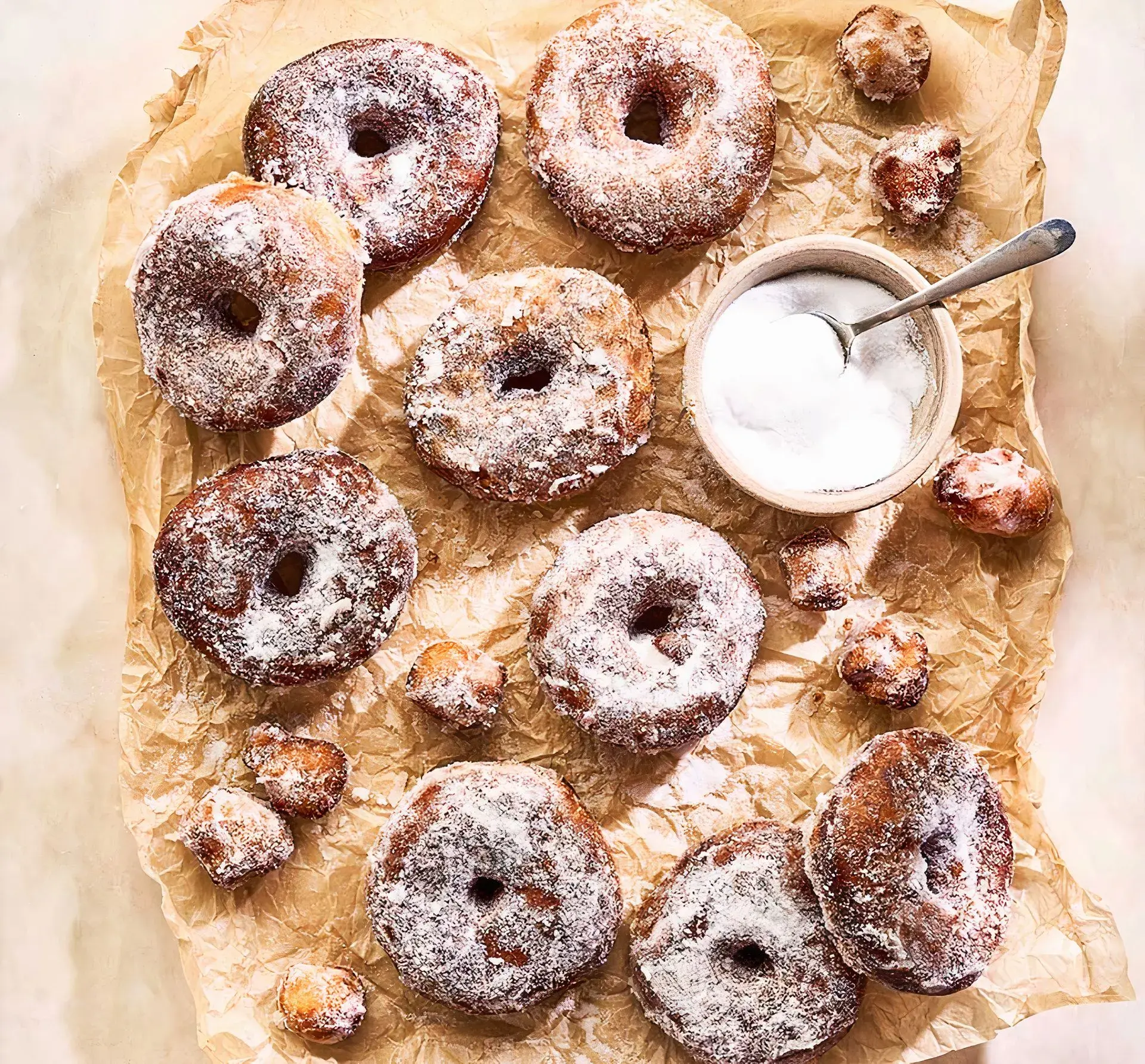 Veganské koblihy? Ano, a ještě lepší! Tradiční ingredience jsme nahradili rostlinnými alternativami a vytvořili tyto úžasné donuty. Abychom měli jistotu, že budou dokonale propečené, vykrojili jsme středy. Výsledkem jsou křupavé a vláčné donuty obalené v cukru, ideální jako sladká svačinka nebo výživný dezert.