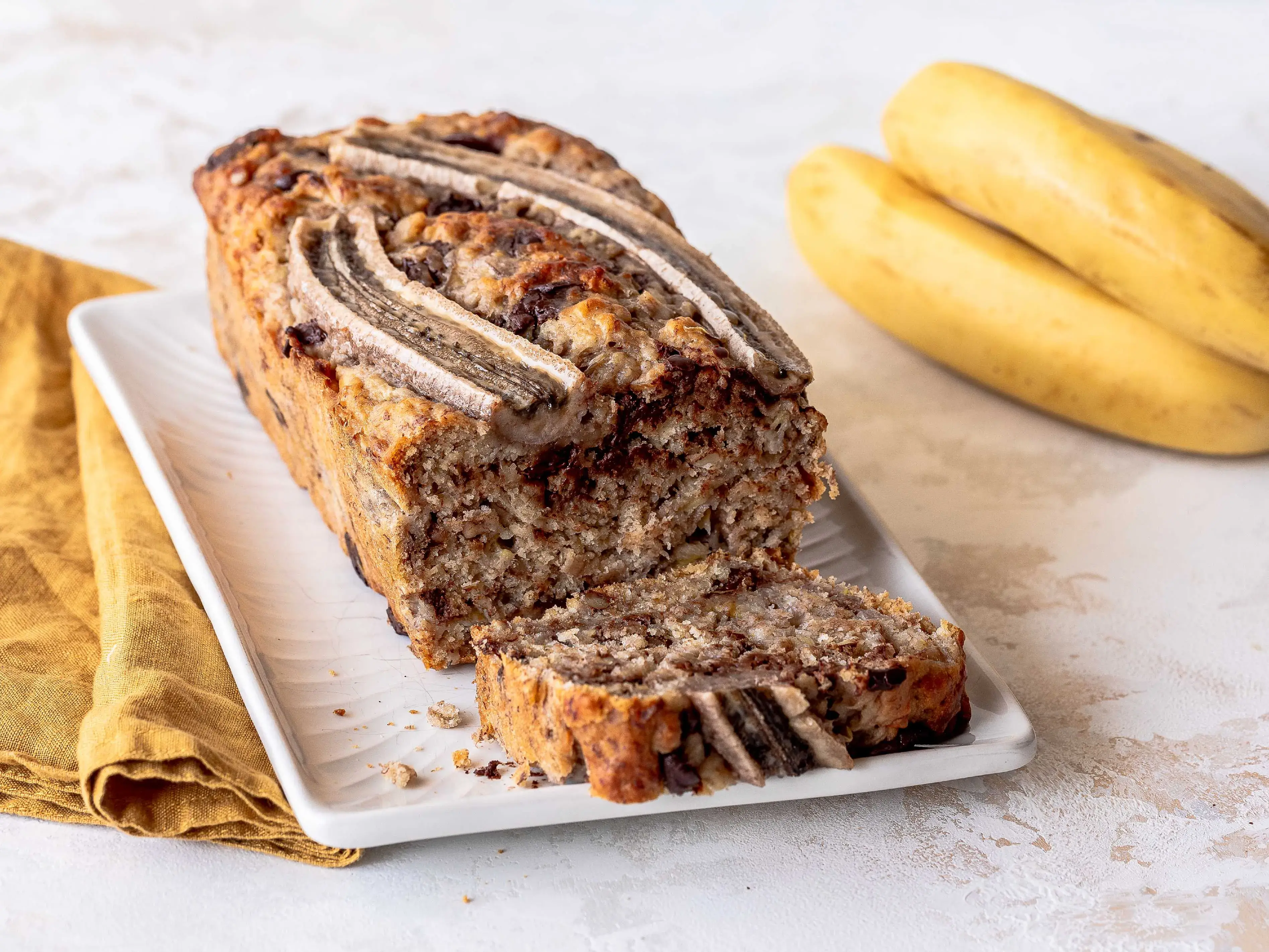 Tento recept na banánový chlebíček je nejen veganský, ale také bez cukru. Těsto je vláčné a nadýchané a díky vlašským ořechům a kouskům čokolády obzvlášť lahodné.