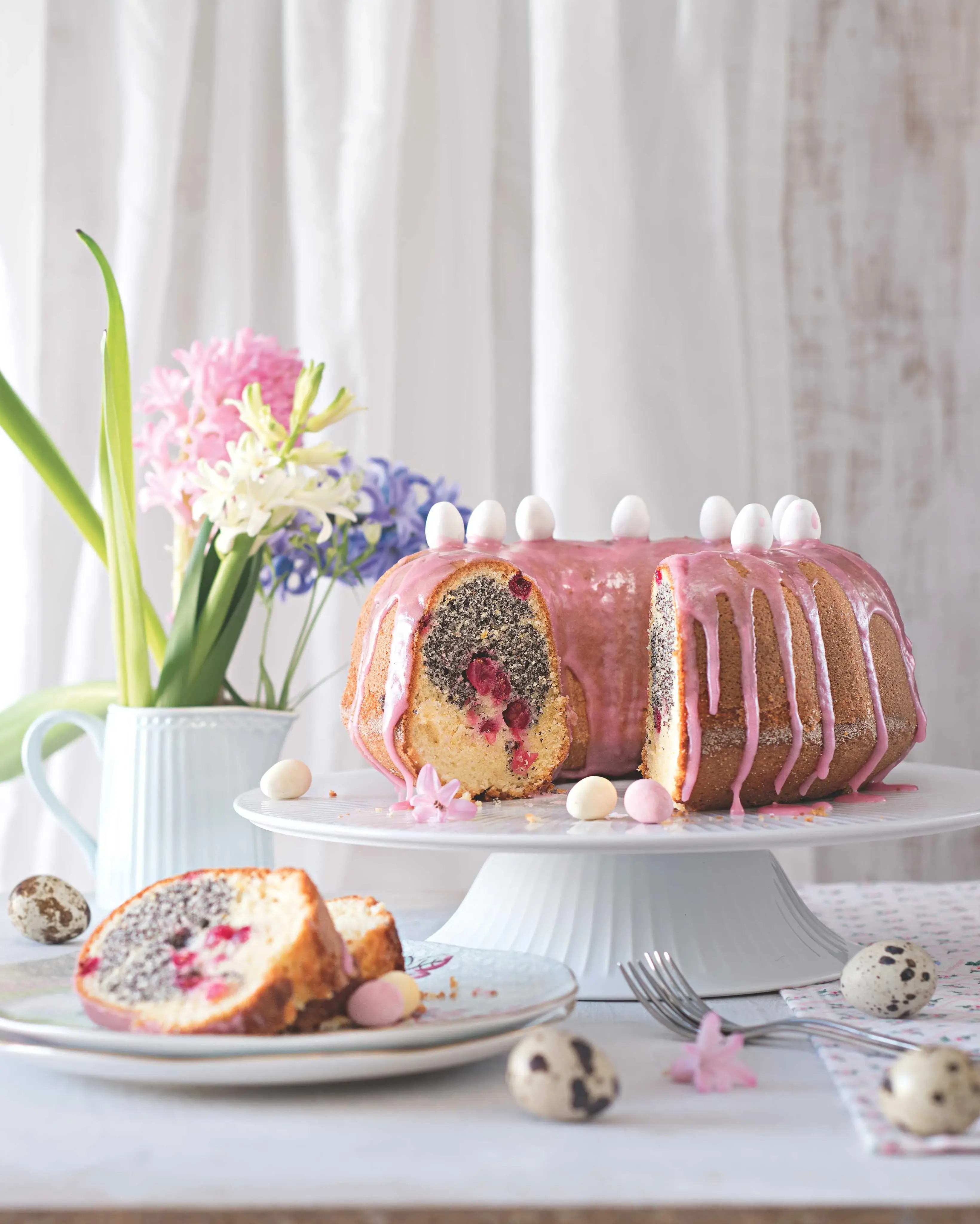 Kombinace vaječného likéru, máku a červeného rybízu je možná překvapivá, ale naprosto skvělá. V redakci se po půvabně vzorované velikonoční bábovce jenom zaprášilo! Takže pokud hledáte alternativu za tradičního beránka, tato luxusní bábovka ho směle zastoupí.