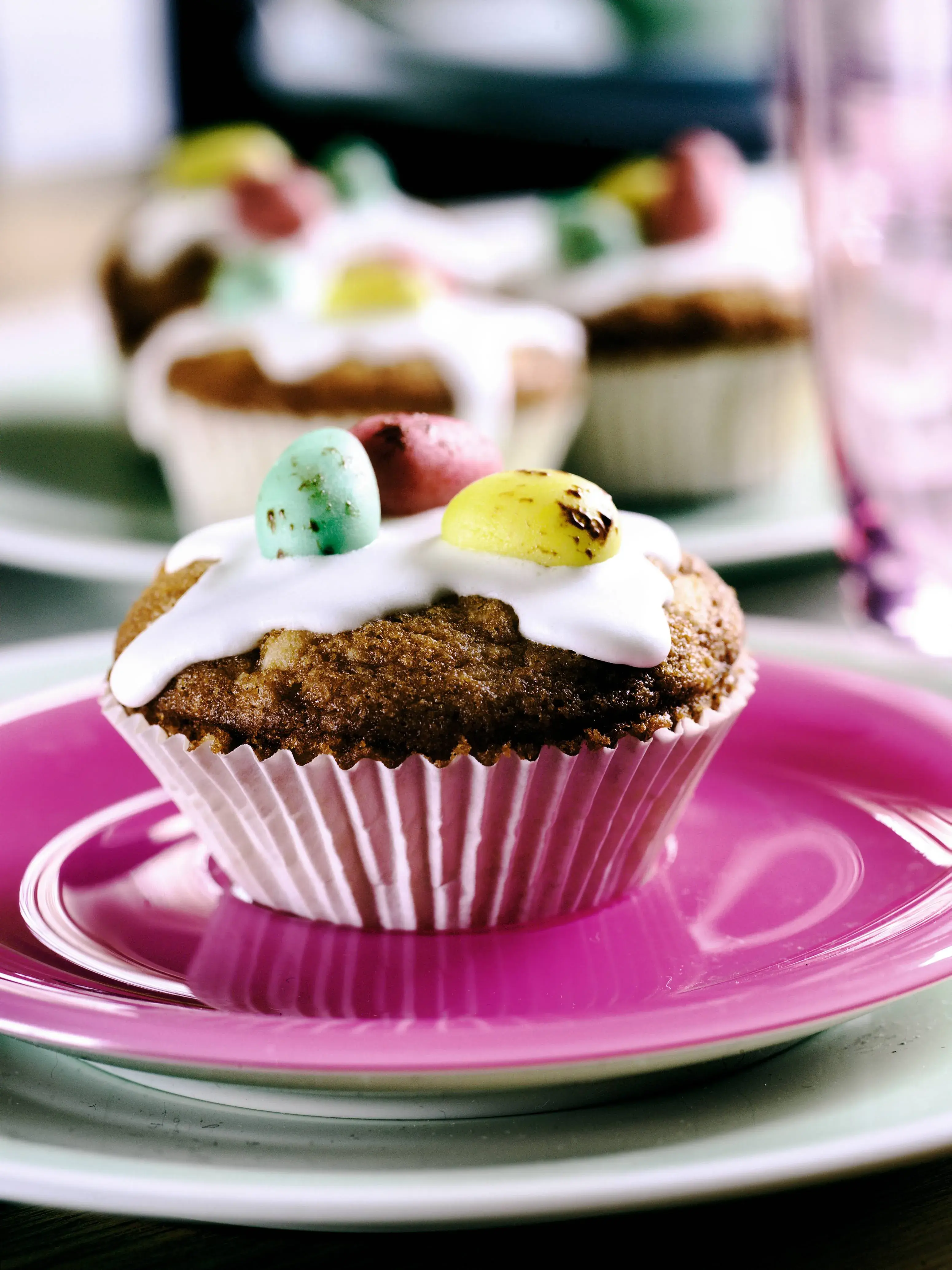 Muffiny obvykle patří do kategorie nenáročného pečení – my jsme ale sáhli po vysloveně požitkářské verzi! Můžete je samozřejmě ozdobit i jinak a napéct na jinou sváteční příležitost.