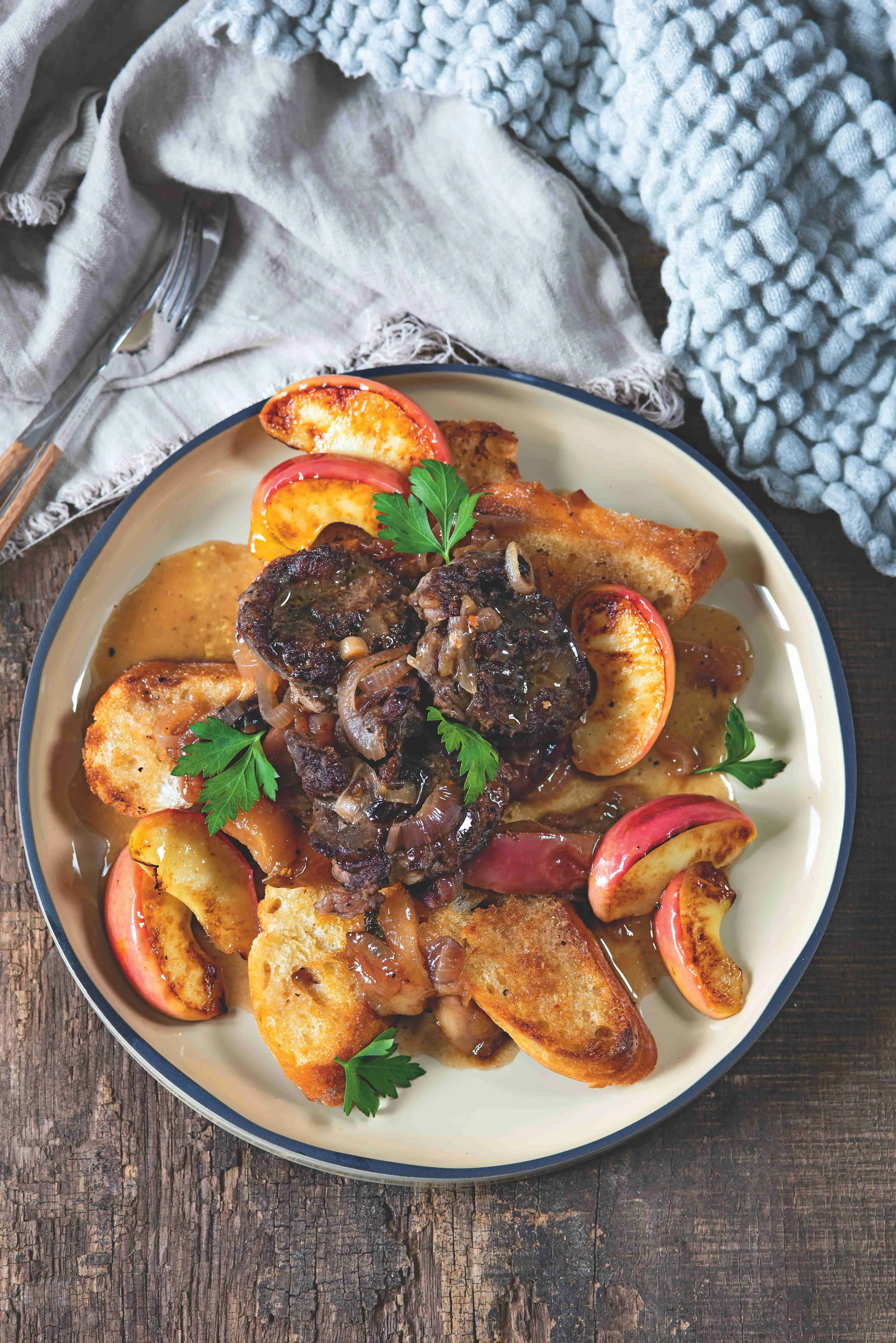 Opečené brambory či kaše budou k líčkům vždycky důstojná volba, my jsme se však tentokrát rozhodli pro bagetu, která vysaje všechnu šťávu. Můžete ji podávat i bokem neopečenou.