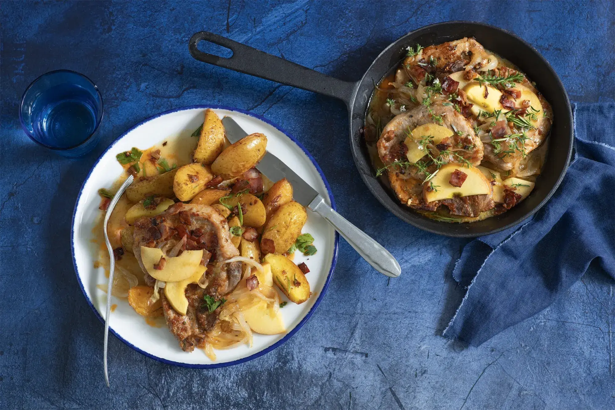 Šťavnaté vepřové kotlety se sladkými jablky a křupavými česnekovými bramborami tvoří skvělou kombinaci chutí, která přiláká ke stolu celou rodinu. Jednoduchá, ale přitom elegantní večeře, která voní podzimem a nabízí dokonalé spojení masa, ovoce a aromatických brambor.