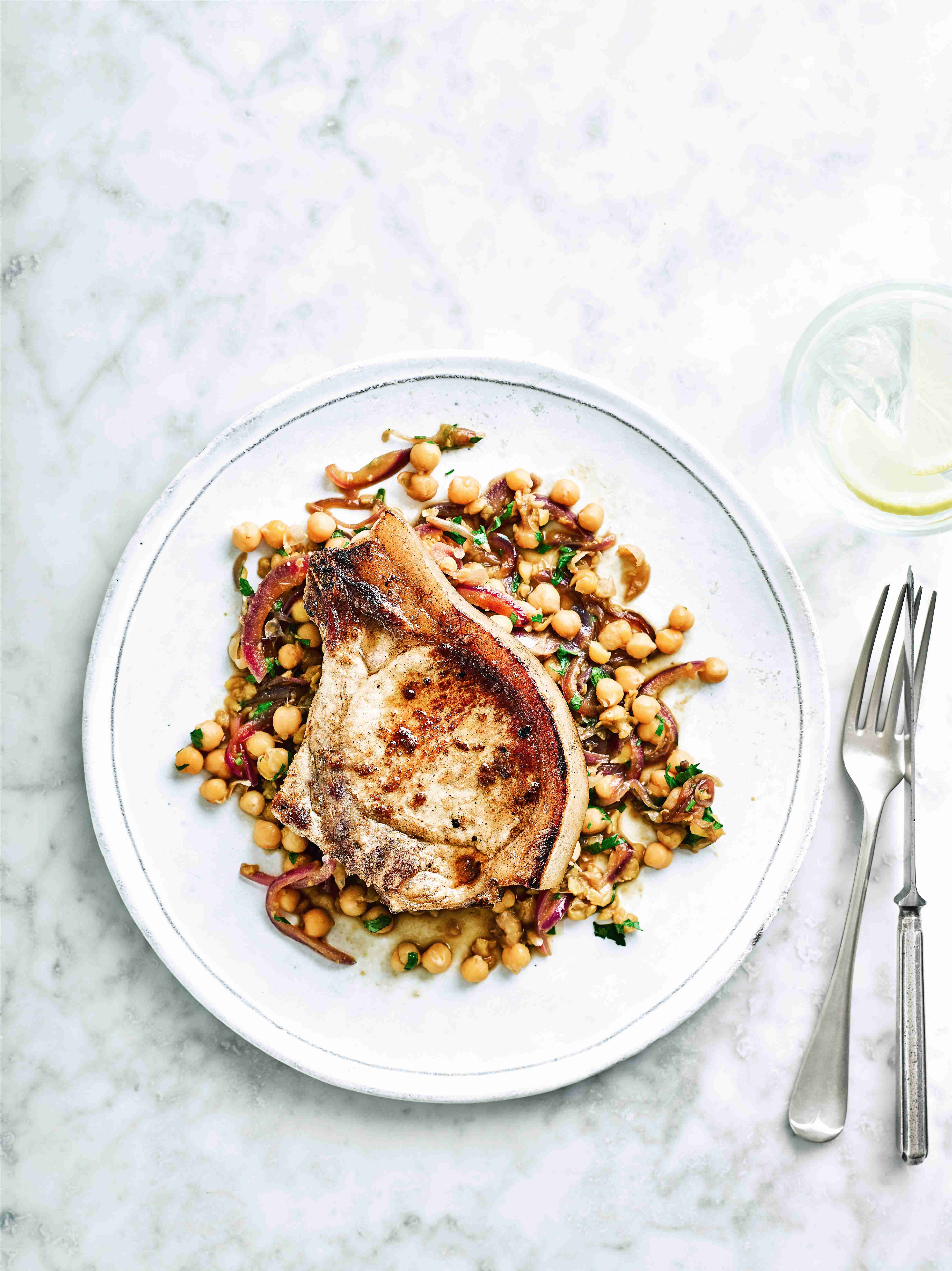 Geniálně jednoduché, jednoduše geniální. Sladkokyselá chuť cibulky si s vepřovým skvěle rozumí, cizrna je možná netradiční, ale skvělá, lehká a výživná příloha. Nebojte se ji zařadit častěji!