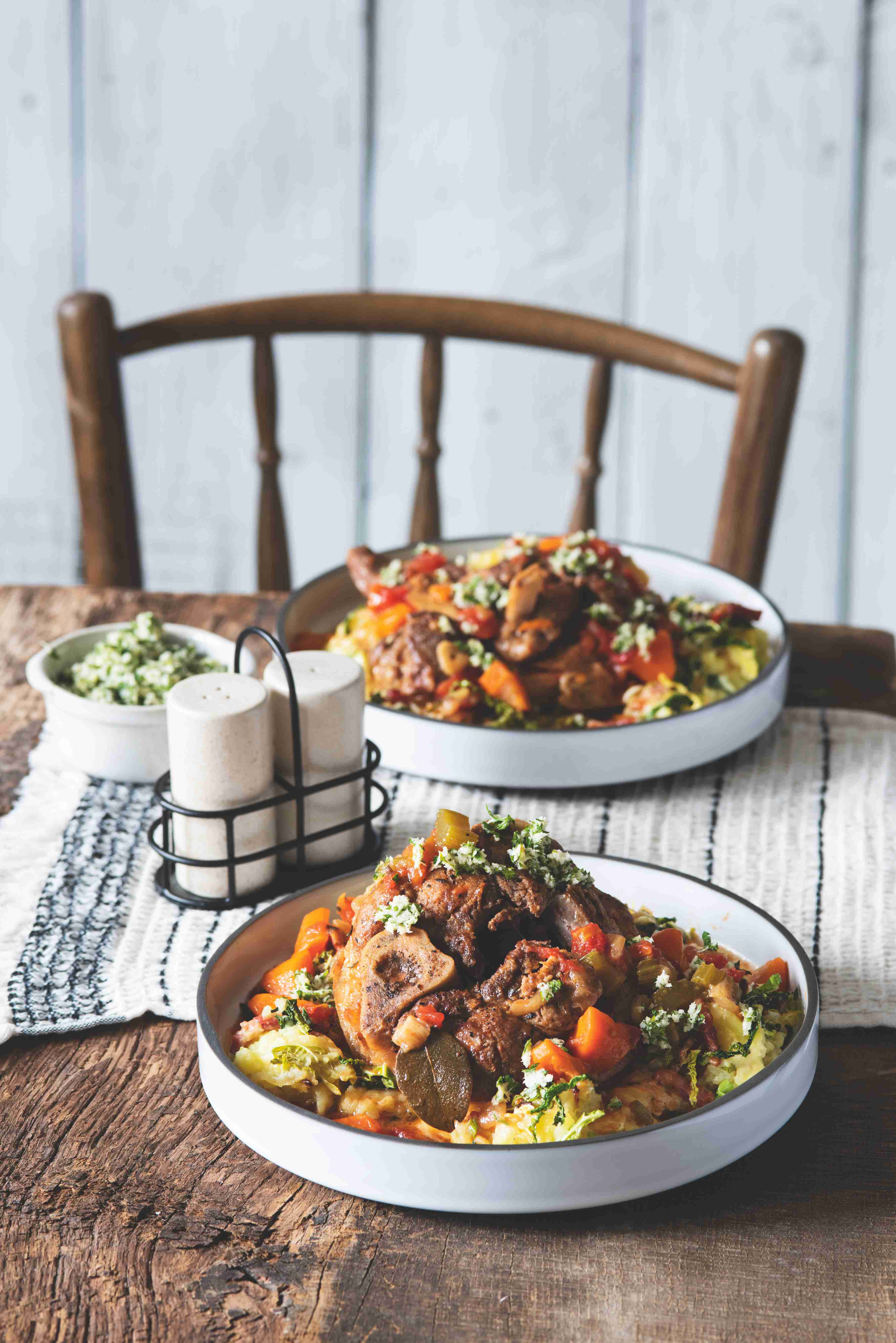 Tradiční pečené vepřové koleno vcelku může vzbuzovat respekt, ale ve formě ossobucca, tedy po nařezaní na plátky, si na něj troufne i začátečník. Kost uvnitř dodává extra chuť, maso je bohaté na kolagen, šťavnaté a lahodné. Maso měkké jako dort jsme doplnili oblíbenými šťouchanými bramborami. Nevynechte křenovou gremolatu, dodá pokrmu nečekaný švih.