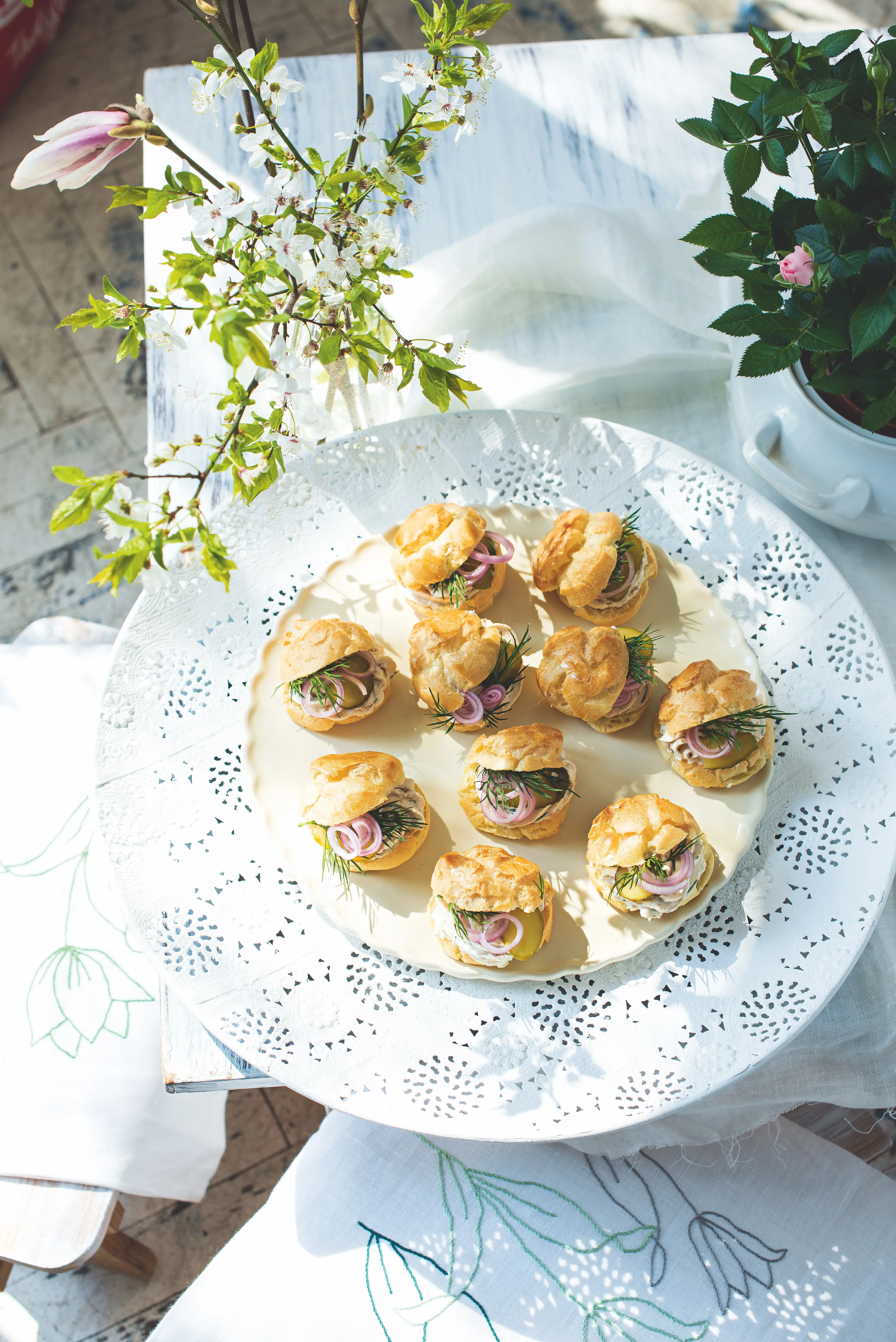 Větrníčky s pěnou s uzeného pstruha jsou zajímavou jednohubkou, která oproti namazanému rohlíku vypadá mnohem vznešeněji. A přitom jde o jednoduchý větrník z odpalovaného těsta a rybí pomazánku. Uzený pstruh je jemný a lahodný, pokud jej však neseženete, poslouží i uzená makrela.