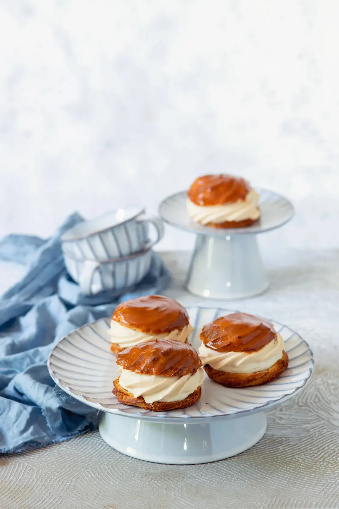 Jednou ochutnáte větrníky podle cukrářky Heleny Fléglové, a už nikdy nebudete chtít jiné. Každý komponent – odpalované těsto, vanilkový krém, karamelová šlehačka i karamelový fondán – je doveden k naprosté dokonalosti. Výsledné větrníky jsou tak akorát sladké a harmonicky snoubí chuť vanilky a karamelu.
