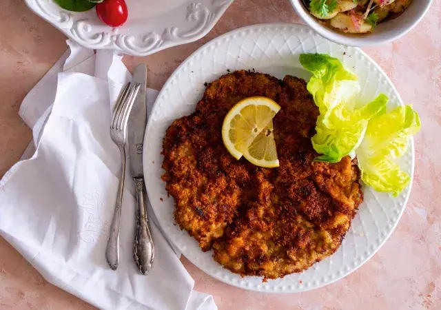 Vídeňský řízek, tedy přinejmenším coby název, vznikl až v 19. století. Od obyčejného řízku liší důsledným použitím telecího masa. A pokud k němu přidáte ještě lehký bramborový salát, vznikne slavnostní oběd pro celou rodinu.