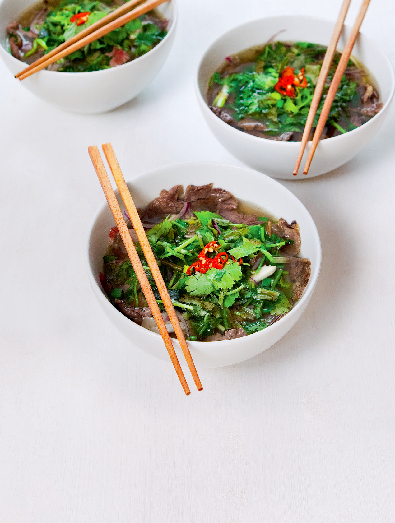 Uvařte si doma barevnou a voňavou hovězí polévku pho bo! O svůj recept na tuto vietnamskou polévku, která vás vždy zaručeně postaví na nohy, se s námi podělily Vietnamky Thuy Duong a Mai Huong. Zasvětily nás nejen do tajemství její přípravy, ale i podávání. Pho se podává v hlubokých miskách a díky bylinkám, masu a nudlím vydá za hlavní jídlo.