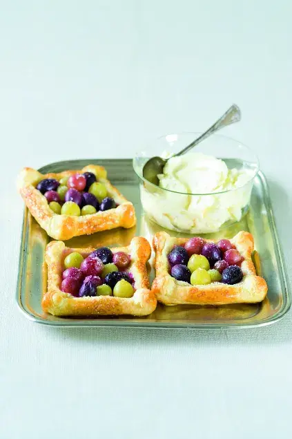 Veselé koláčky lahodí oku i chuti. Hrozny a mascarpone ochucené šťávou z citronu se skvěle doplňují.