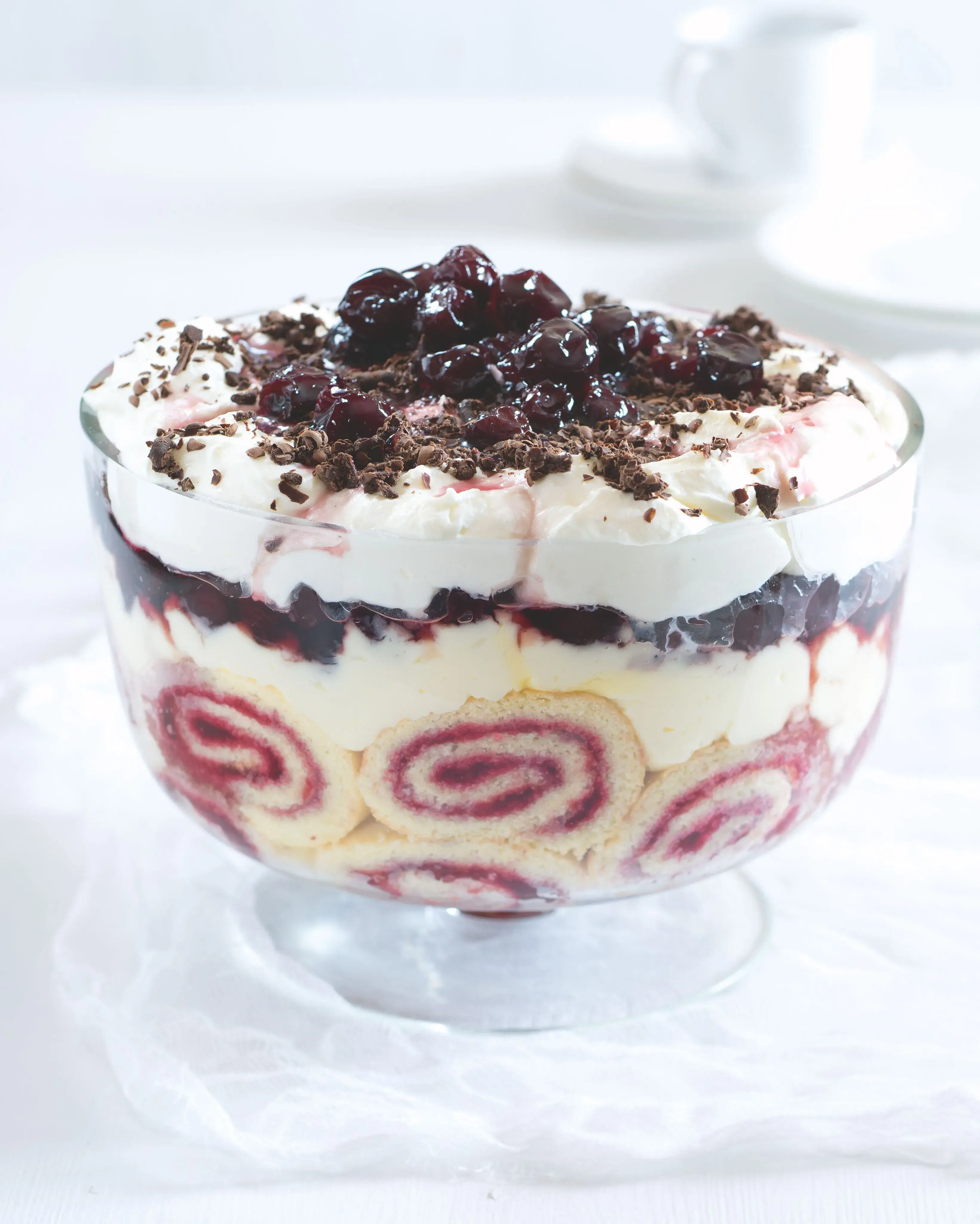 Britský trifle, tedy maxipohár, je pohříchu dobrý dezert. Navíc je nejskutečně variabilní – efektně navrstvit do něj totiž můžete všechno, co máte rádi. Tentokrát jsme zvolili kombinaci piškotových šneků, vanilkového žloutkového krému, šlehačky a opilých višní. O porci pro 8 lidí jsme se nakonec dělili jenom neradi...
