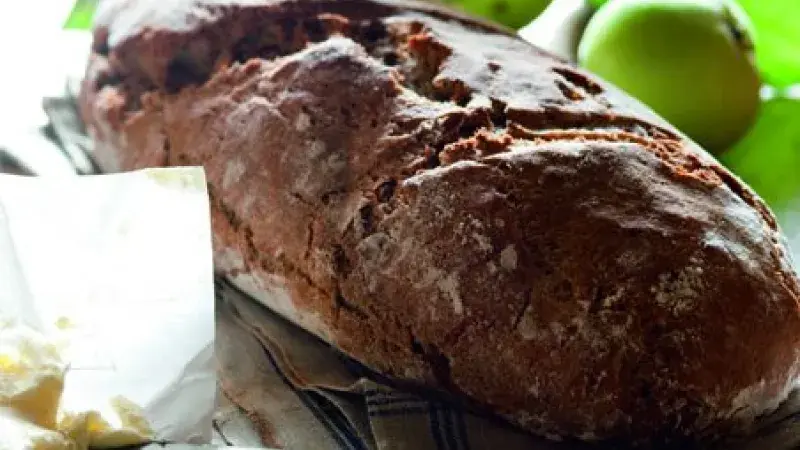 Chutná báječně a vydrží vláčný i tři dny. Pokud máte domácí pekárnu, nejprve do ní nalijte tekuté ingredience a pak přidejte mouky; ořechy přisypte až po prvním hnětení.