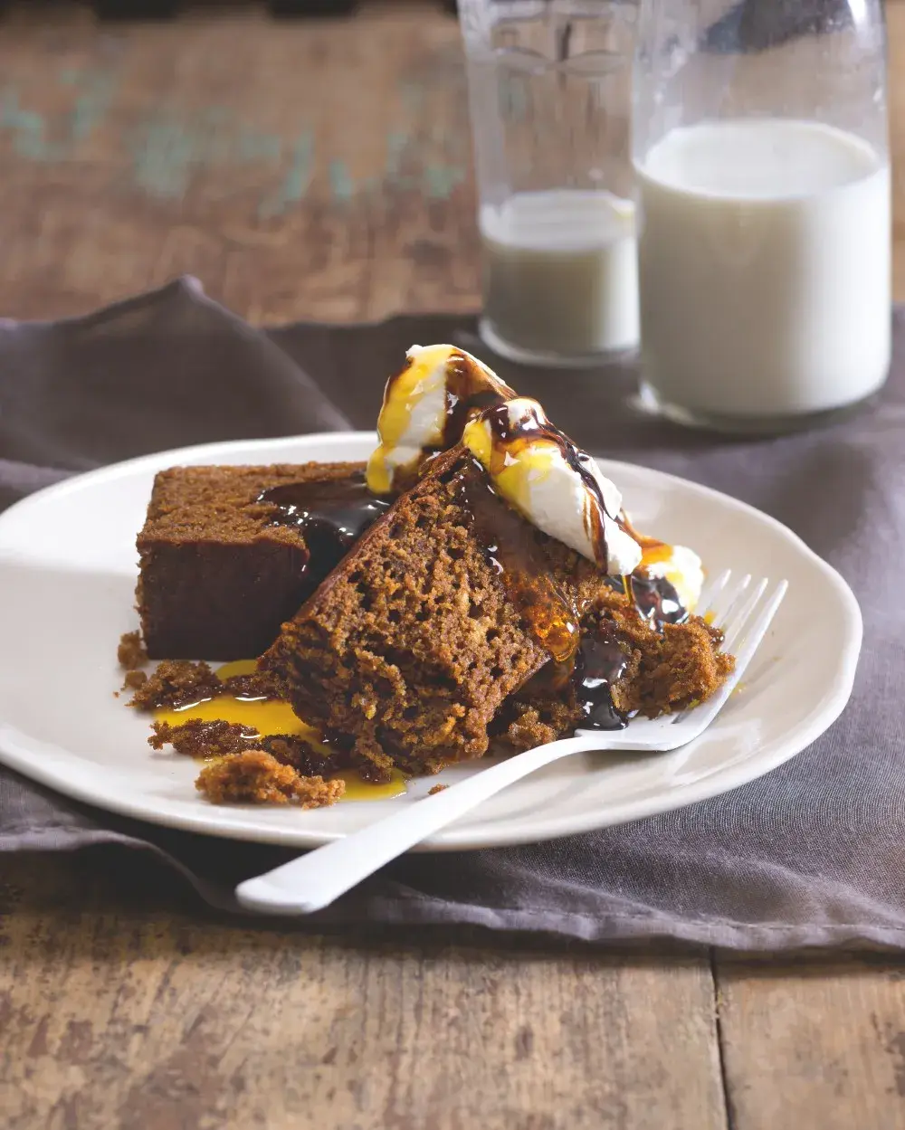 Sníte o receptu na litý perník, který je voňavý, příjemně kořeněný, vlhký a vláčný? Pomohli jsme si zlatým sirupem a melasou, a tady ho máte! Tento perník na plech můžete vylepšit stejně jako my tím, že ho před podáváním přelijete javorovým sirupem, vaječným likérem nebo jinou oblíbenou ‚omáčkou‘.