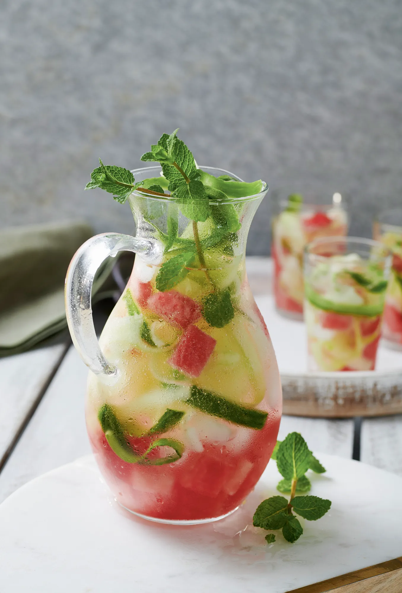 Vyměňte v létě konvenční limonády za ochucenou vodu s melounem a okurkou. Příprava je až neuvěřitelně jednoduchá a kromě toho, že vás osvěží, také dodá potřebné vitamíny a minerály, které jsou i v létě potřeba.