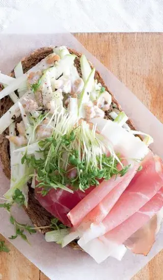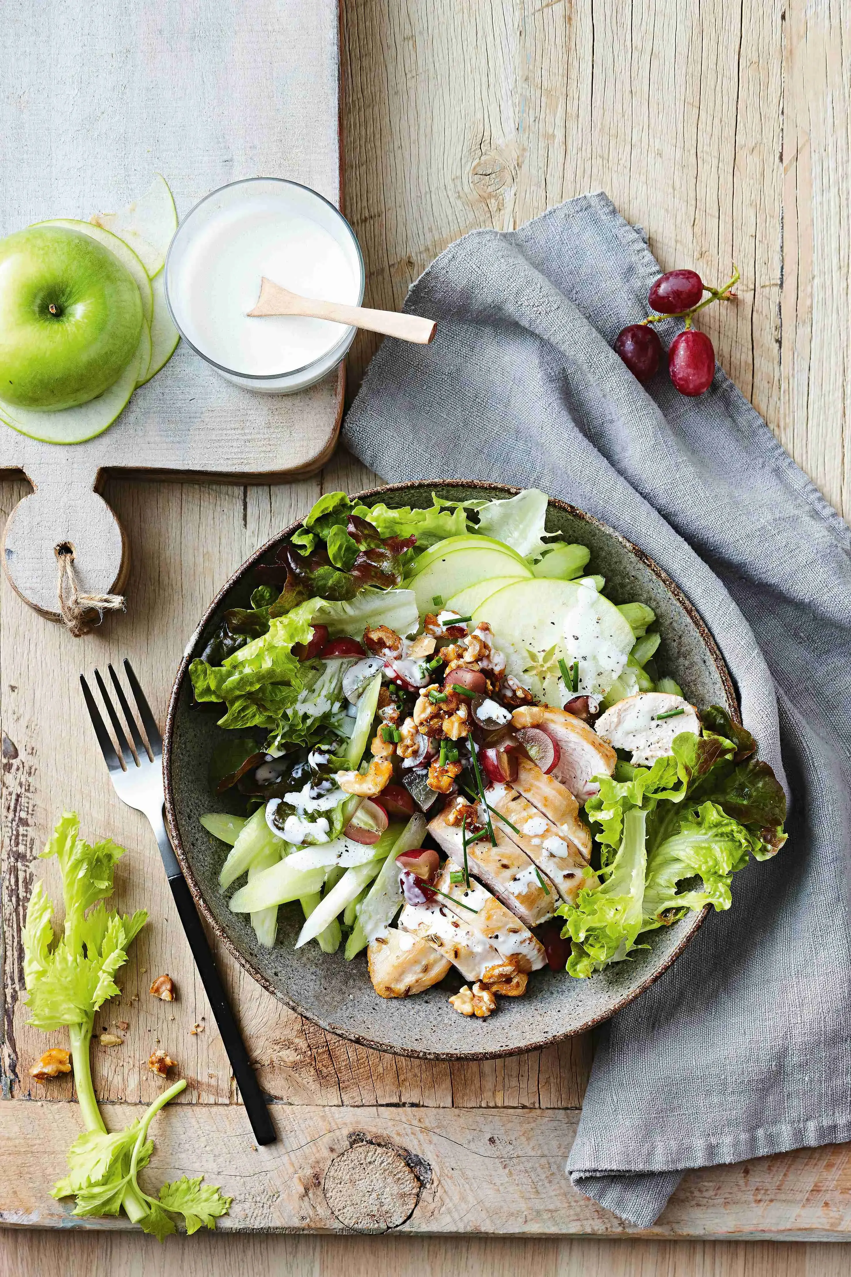 Původní recept na Waldorfský salát z roku 1896 zahrnoval nakrájená jablka, celer a majonézu. Vlašské ořechy přibyly až v roce 1928 díky receptu z kuchařky The Rector Cook Book. Salát se však neustále vyvíjel, a tak dnešní základní verze obsahuje ještě směs hlávkových salátů, řapíkatý či bulvový celer a hroznové víno. My jsme pro větší sytost navíc přidali kuřecí maso.